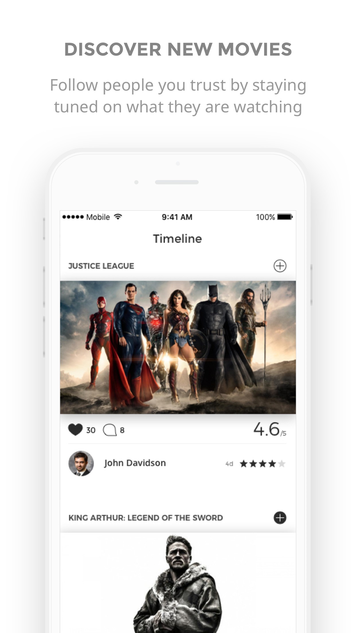 Your timeline shows what movies your friends have been watching and what they are planning to see next. You can let them know your thoughts or find something to watch during weekend.