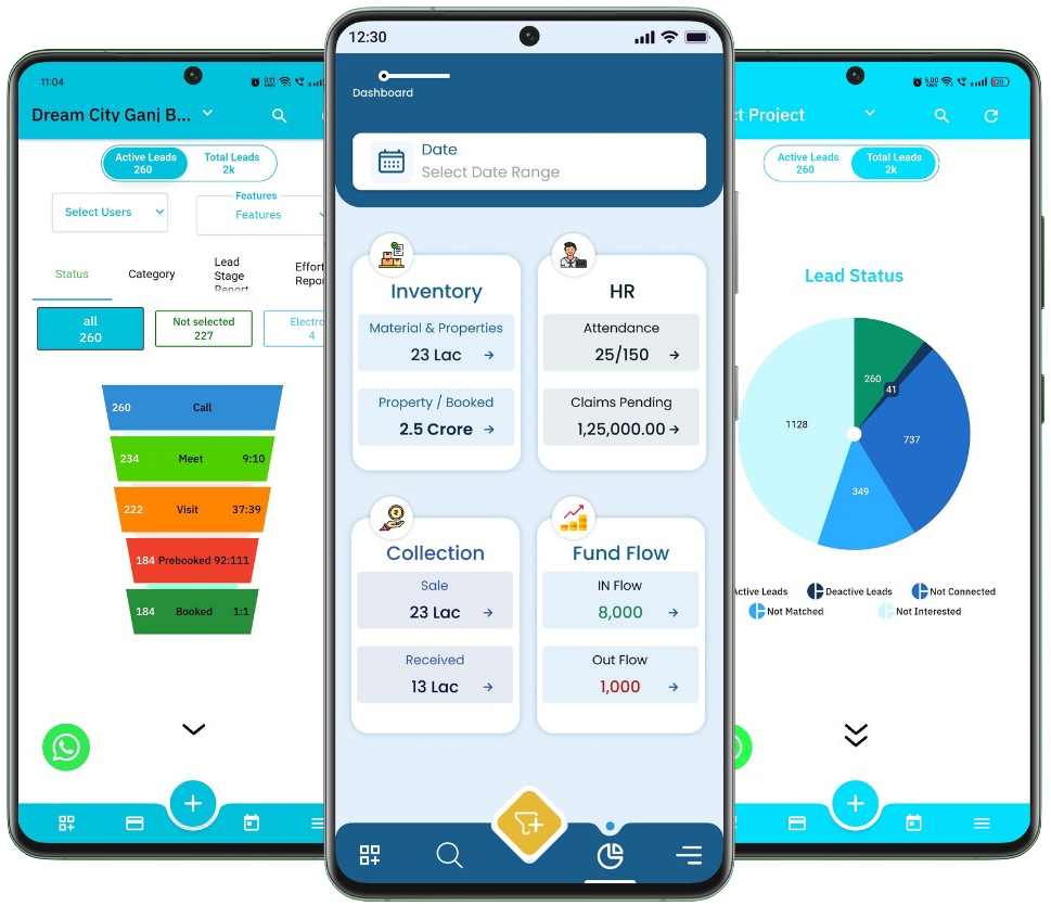 Realty Organiser, a product by Eagle Netra Real Estate Technologies Pvt Ltd ensures that you have all your bases covered. This All-in-one software provides modules for employee performance tracking, seamless lead management, property management, intelligent fund management, HR, Inventory management, and more. Our user-friendly interface simplifies complex tasks, making day-to-day operations easier.