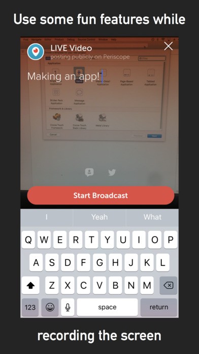This app records your screen and allows you to play music, draw on the screen, turn flash on or off, and much more. Also a secondary feature allows you to use Periscope or Mobcrush to record the screen live while using these great features for only $0.99!