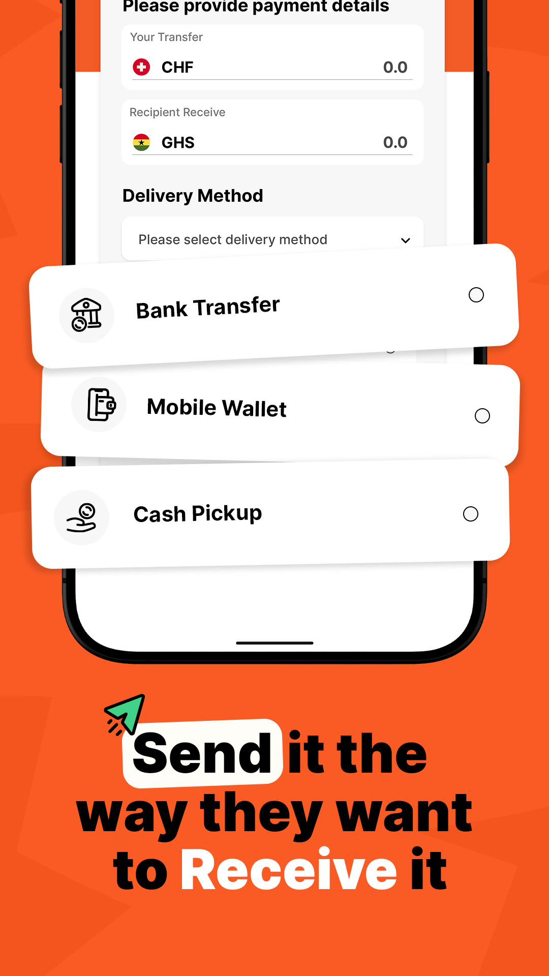 ⦿ Trusted Payout Methods – Direct to bank or cash pickup