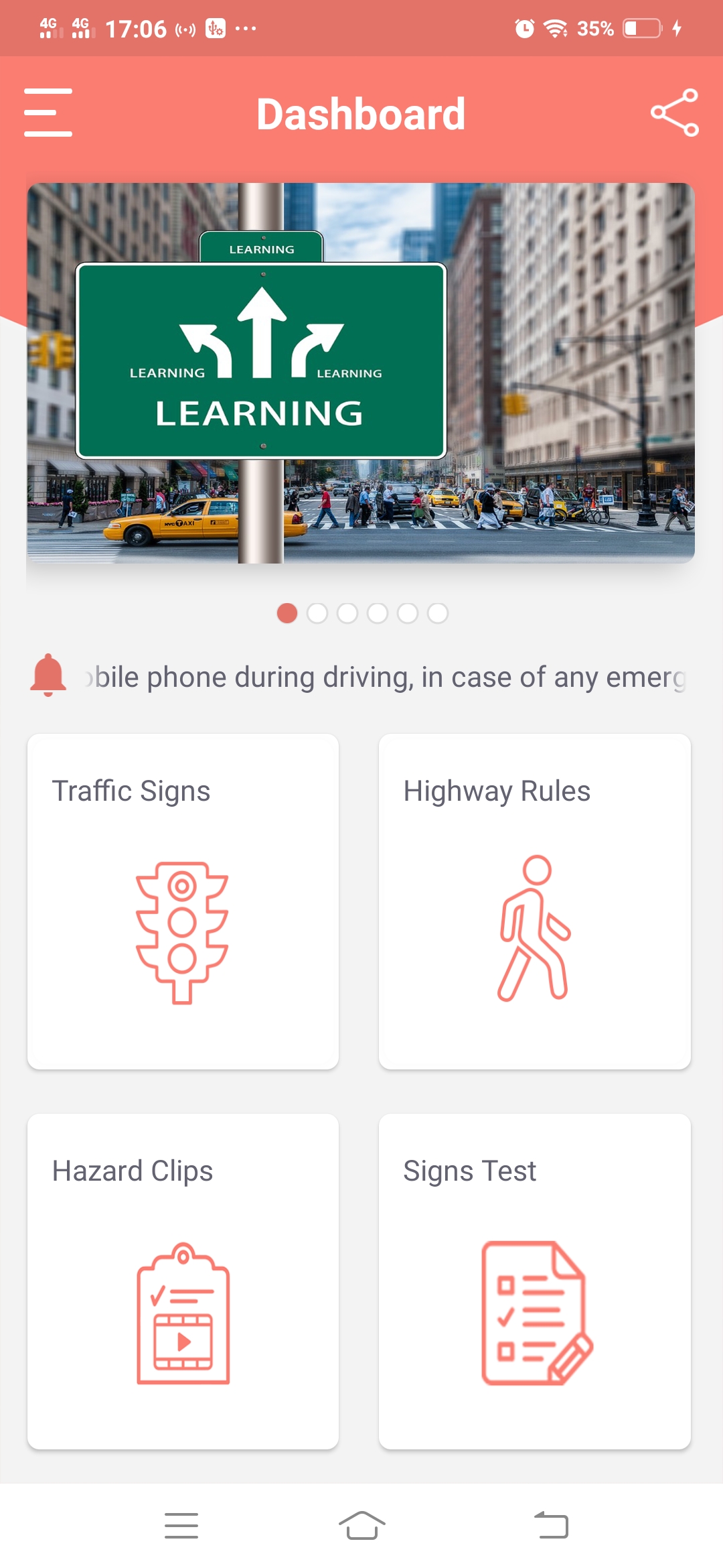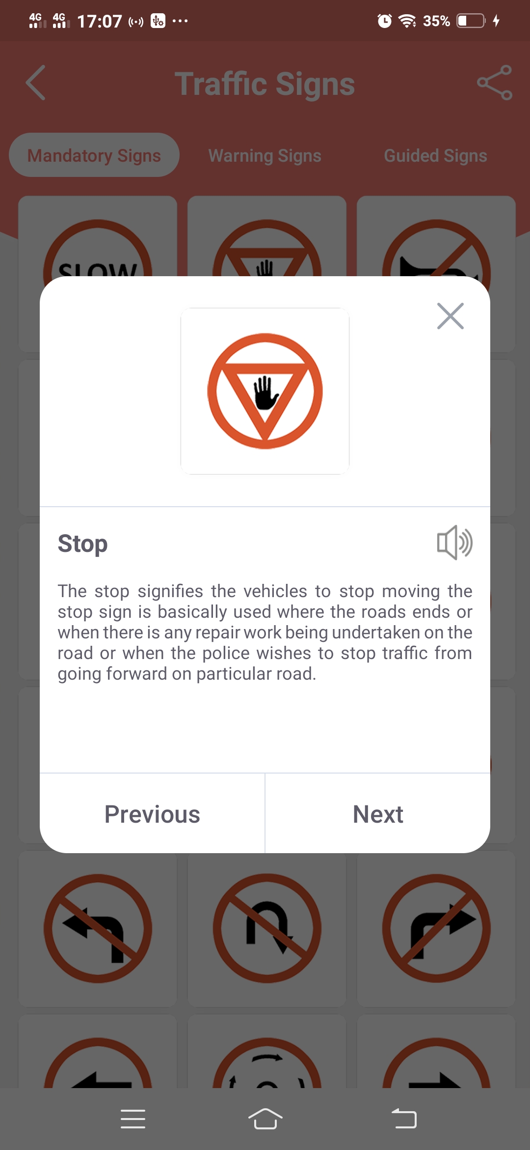 Traffic learner has a variety of information divided in different sections so that you can also chose the nature of topics and questions, you need to focus on. Besides this The sample Tests also have Difficulty level so that you can hit the real Driving test like an expert. Road signs test and other mandatory traffic signals are added in quiz portion to enhance the knowledge and will help you pass your driving license test easily.