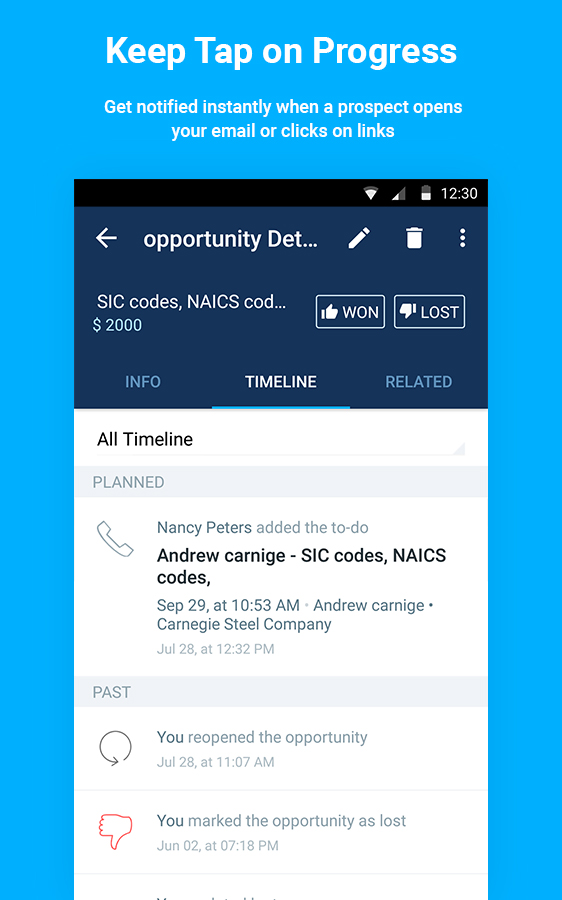 Salesmate CRM is designed to help sales reps be more productive. With Salesmate mobile app, you can have all your client’s data at your fingertips. Get 360 degree view of your customer even if you are on field. With Salesmate CRM app you can manage all your sales process seamlessly. It helps you automate all your data entry task and provide you essential insights on past conversation with your clients.