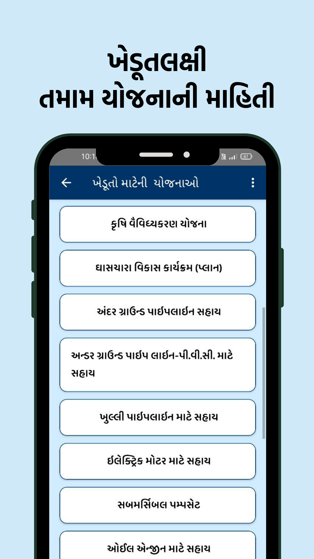 આ એપ માં આપ નીચે મુજબ ની યોજનાઓની માહિતી મેળવી શકશો.