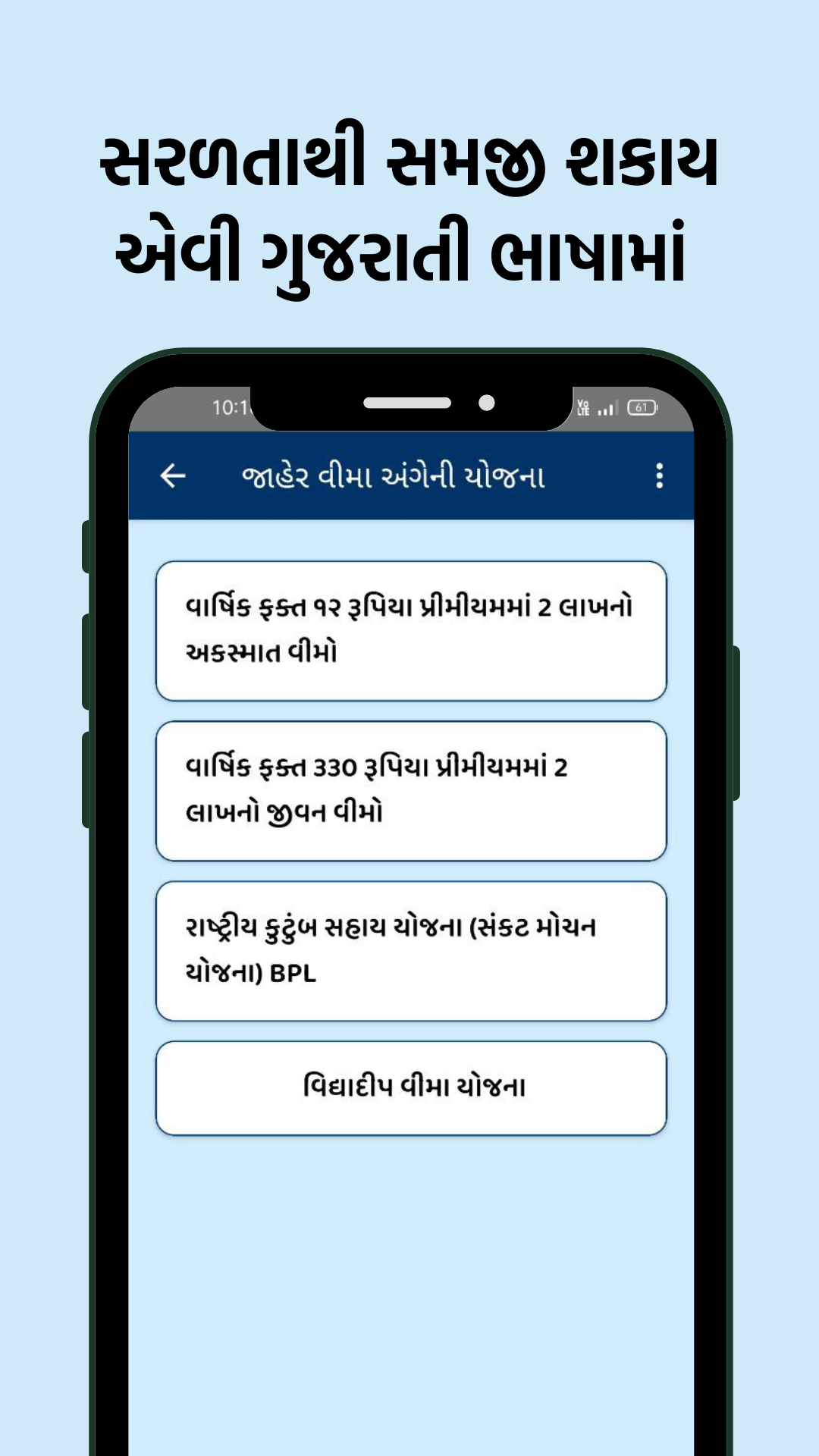 સરકાર દ્વારા અનેક પ્રકારની યોજનાઓ લાવવામાં આવતી હોય છે,પરંતુ માહિતીના અભાવે લોકો સુધી પહોંચી શકતી નથી સરકારી યોજનાની માહિતી જરૂરિયાતમંદ લોકો સુધી પહોંચી શકે એ હેતુથી આ એપ બનાવવામાં આવી છે.આ એપમાં આપ ગુજરાતી ભાષામાં ગુજરાત સરકાર તેમજ કેન્દ્ર સરકારીની તમામ યોજનાની માહિતી મેળવી શકશો, જેવી કે ,