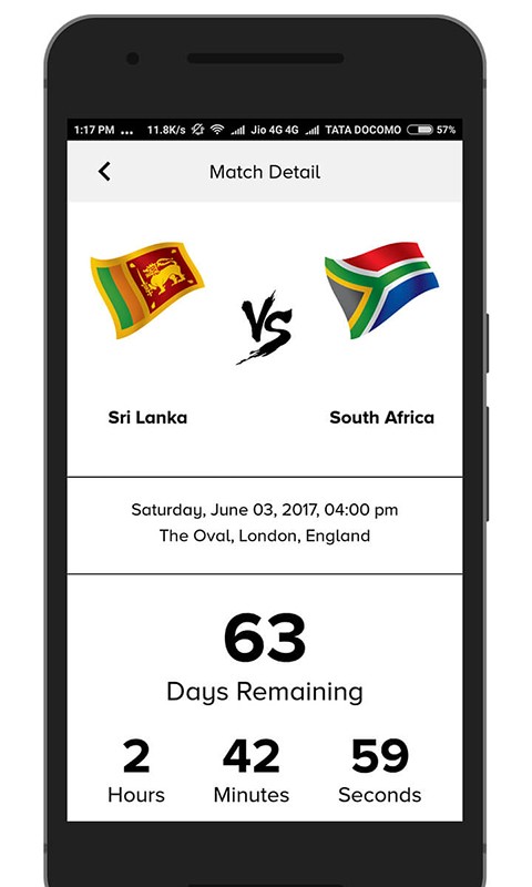 Features you can enjoy in ICC Champions Trophy Schedule 2017 app: