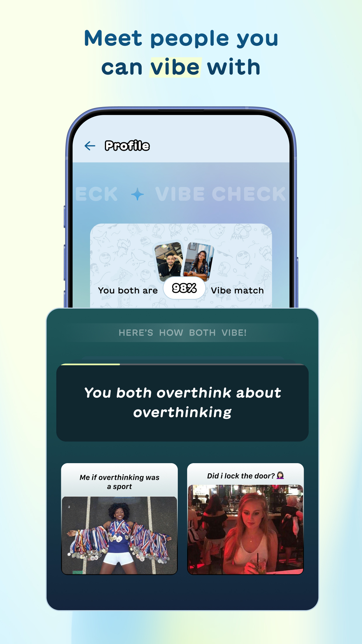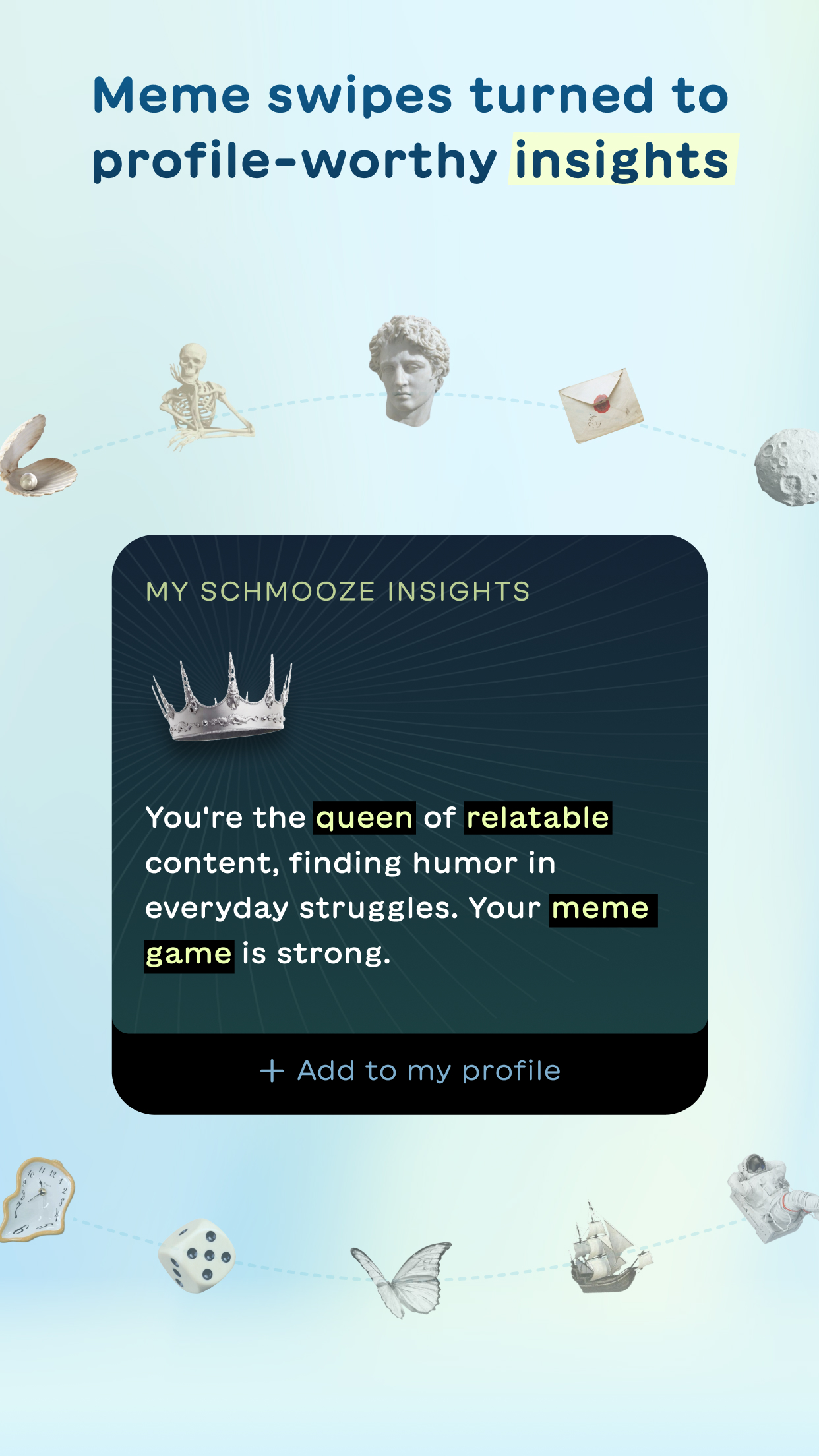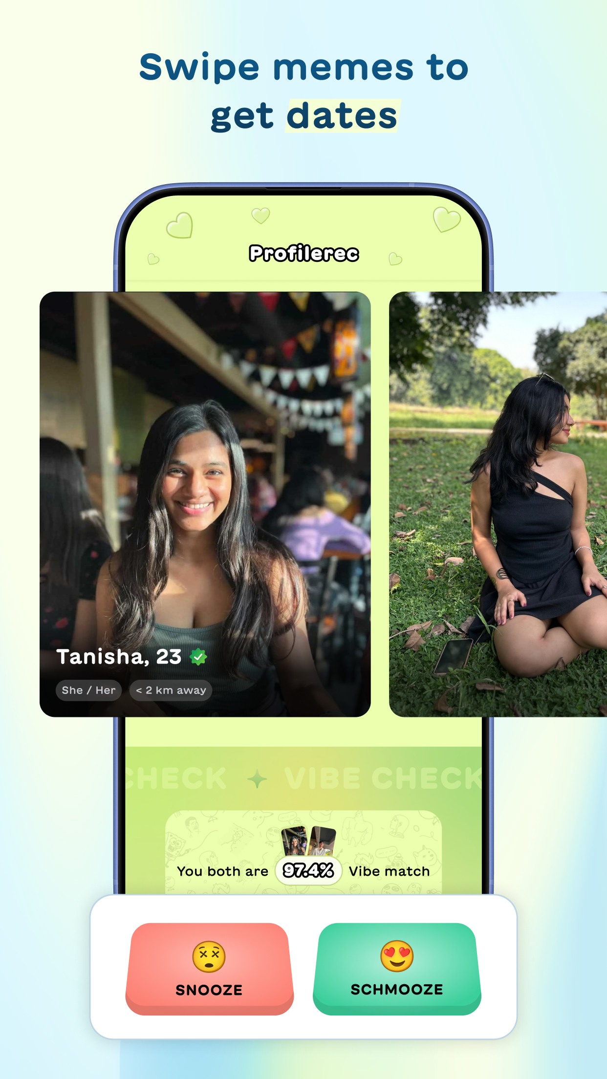 Download the Schmooze app to connect through memes and vibes. A new way to meet friends or dates using humor and Gen Z energy.