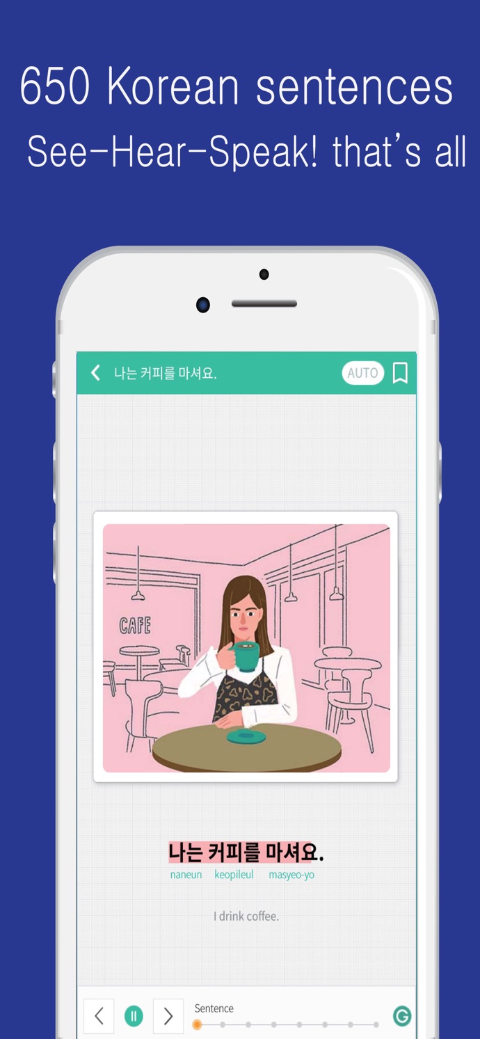 There are 5 characters within the 650 sentences that share stories of everyday life. These characters create relationships of friendship and love between each other. These characters will foster your desire to keep on learning Korean language.