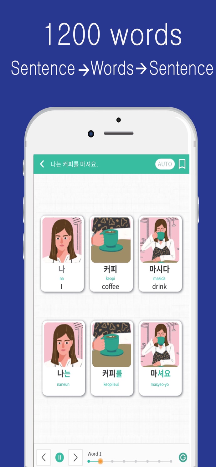 650 sentences, 1200 words, Korean alphabet, all related to daily life and can be learned easily by anyone.