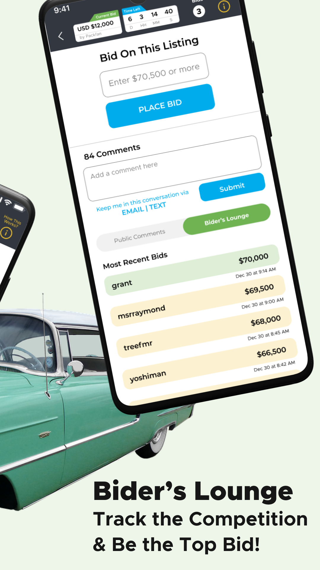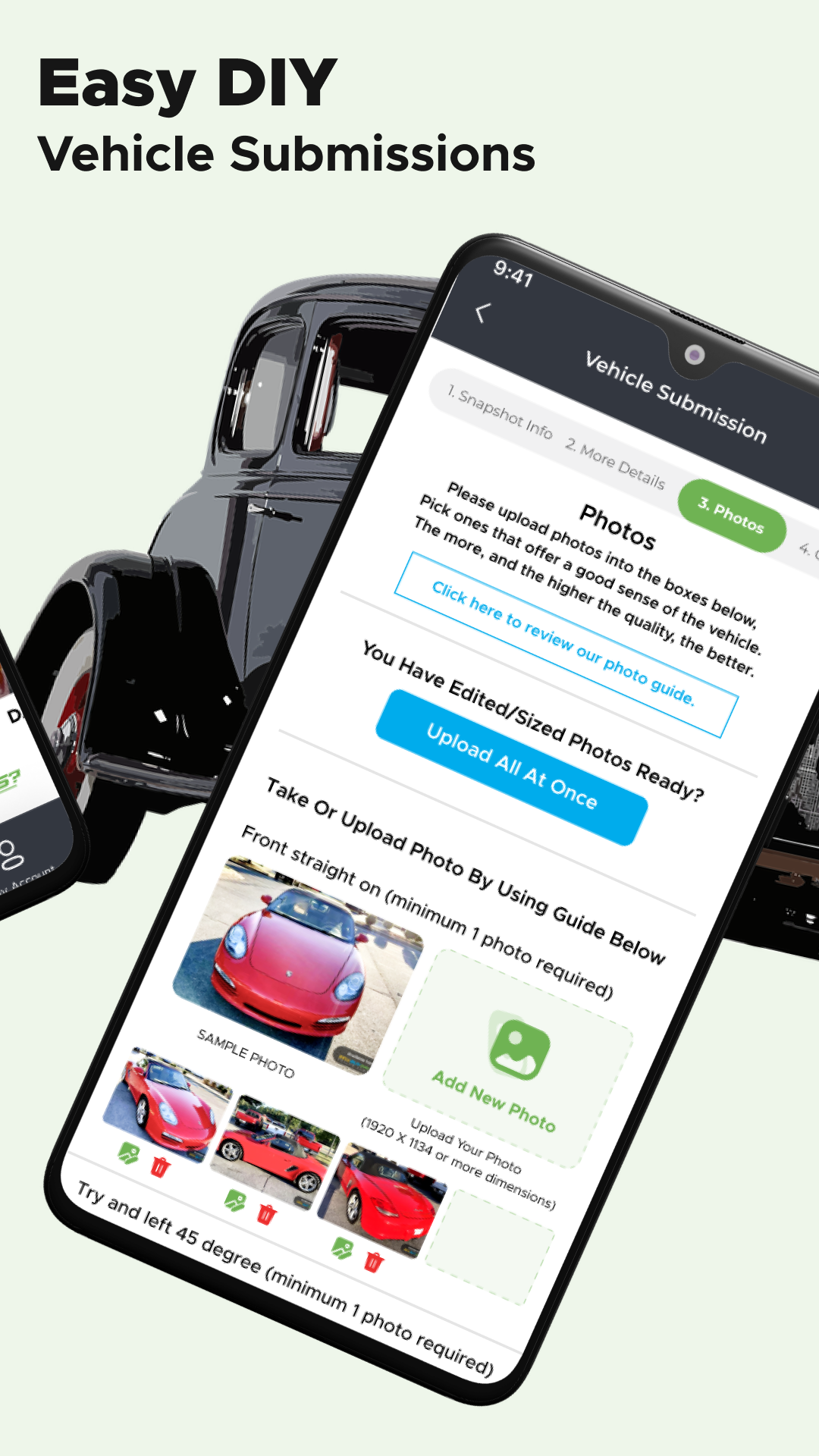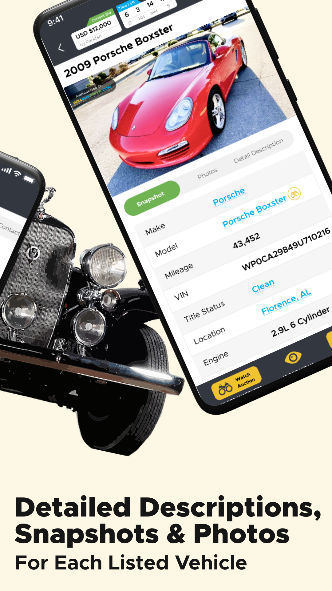 The auction process starts with sellers submitting their cars through the website. We select the most interesting and work with the seller to compile a thorough listing for the vehicle. Auctions typically run for 7 days.
