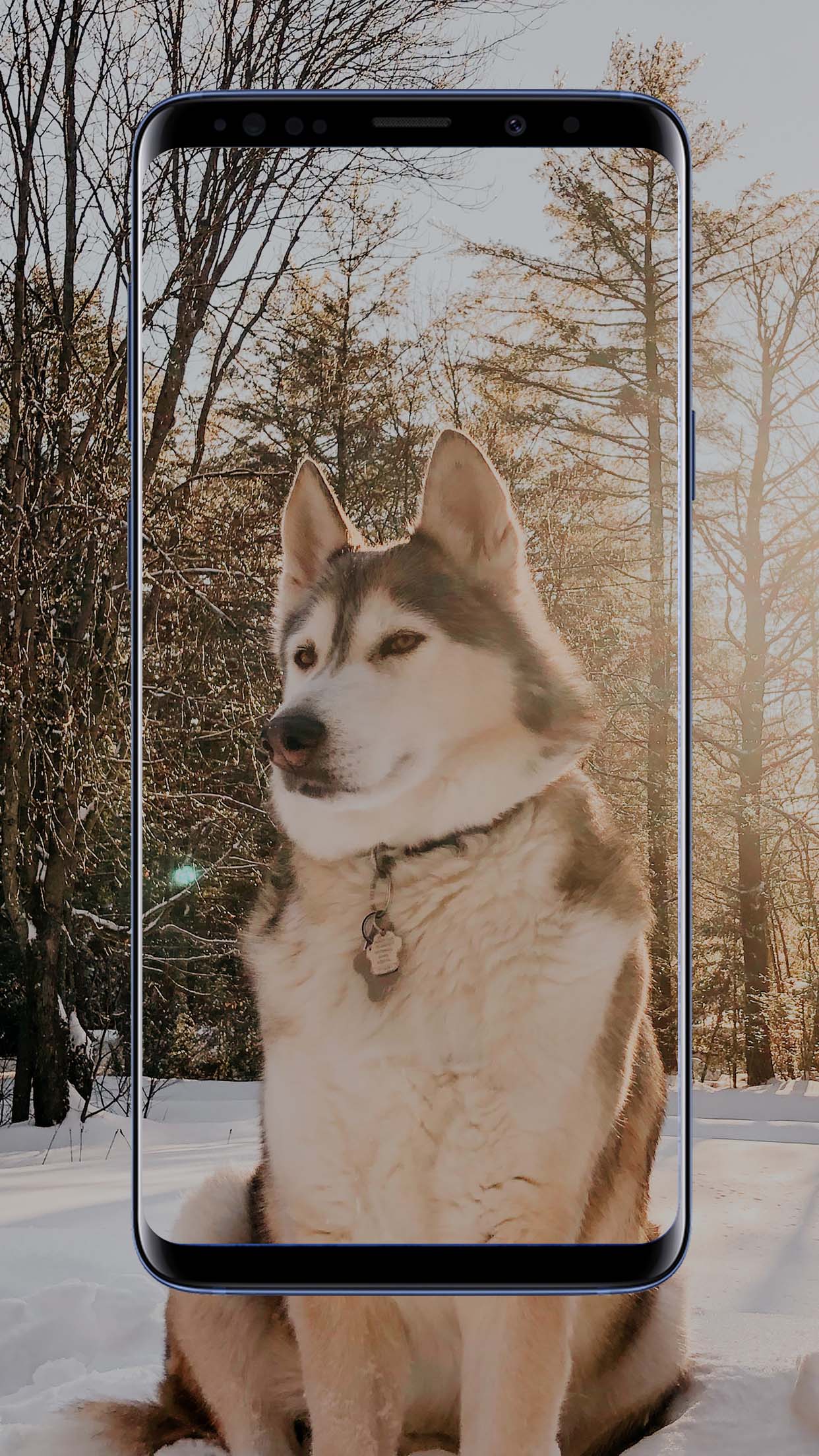 Husky wallpaper application is a valuable find for husky dog lovers; the application contains many images of husky dogs.