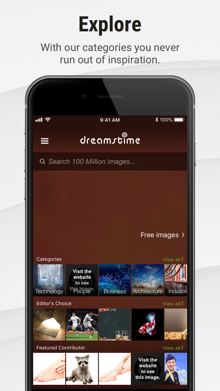 With the Dreamstime app, inspiration is always in your pocket. You can easily browse, search, download and license amazing images from contributors worldwide directly on your smartphone or tablet.