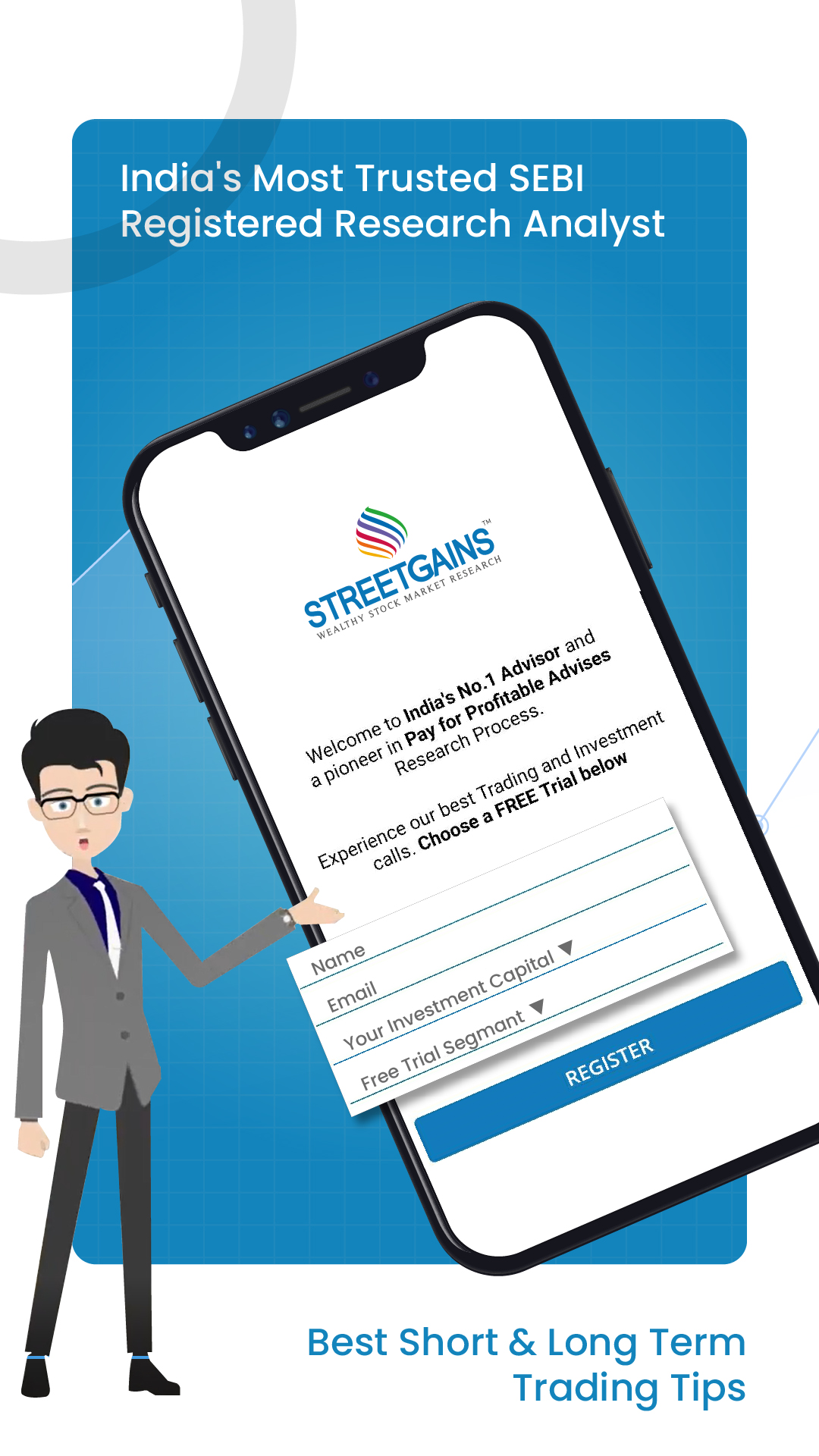 Streetgains is India's most trusted SEBI Registered Advisor & Research Analysis Firm with more than 2 million registered users with extensive experience of more than 10 years. It is India’s most trusted equity advisor having professional team expertise in technical and fundamental research.