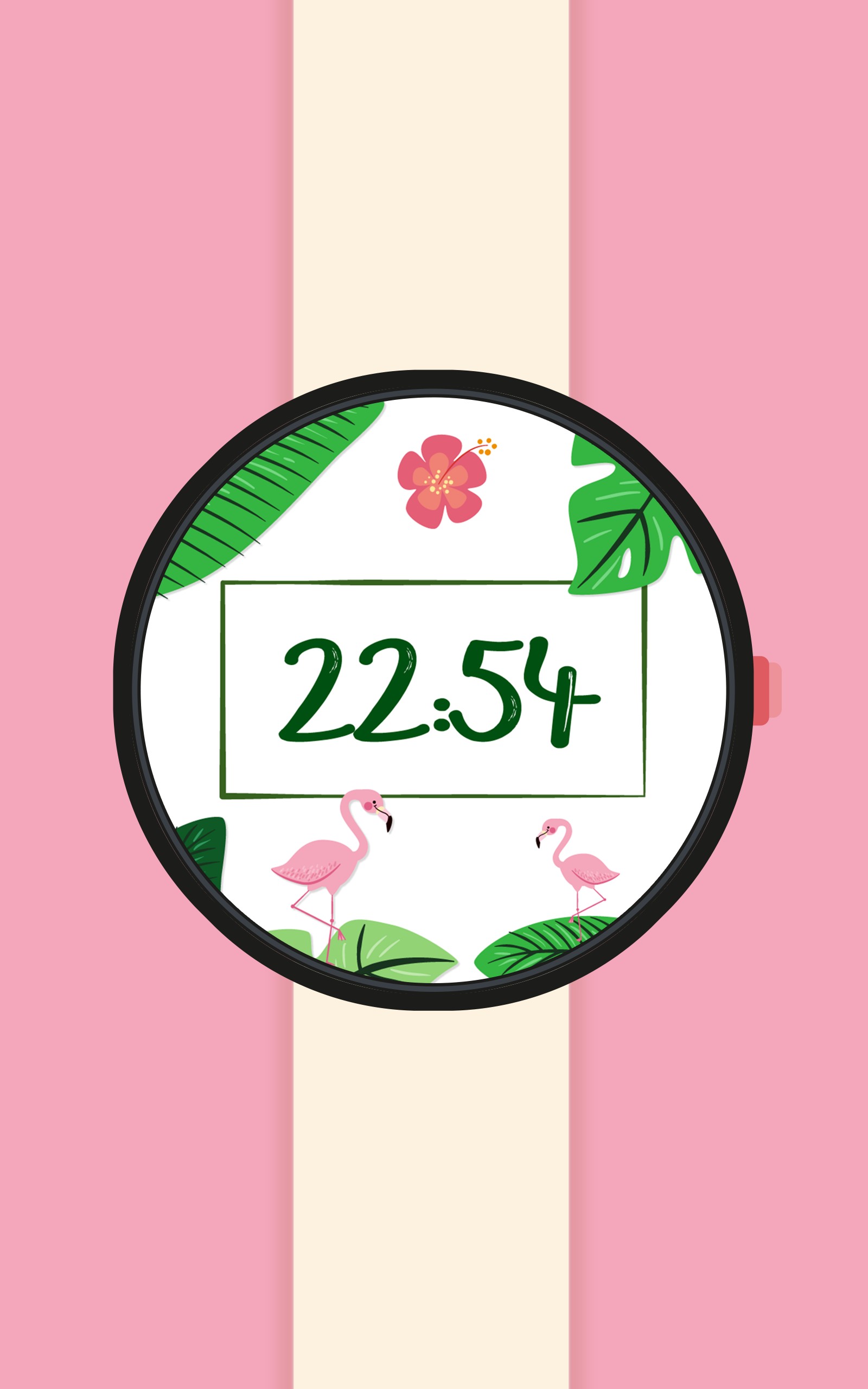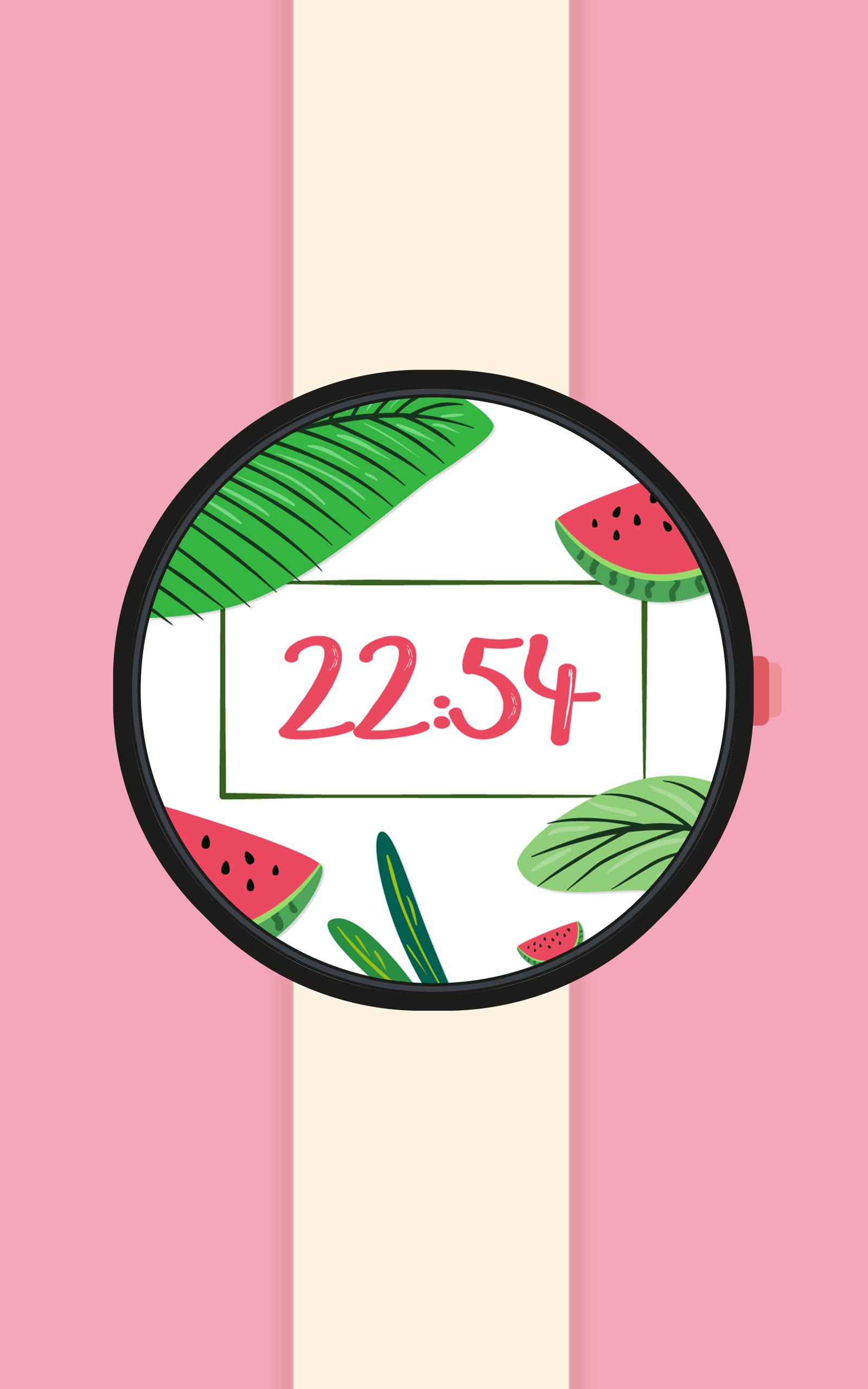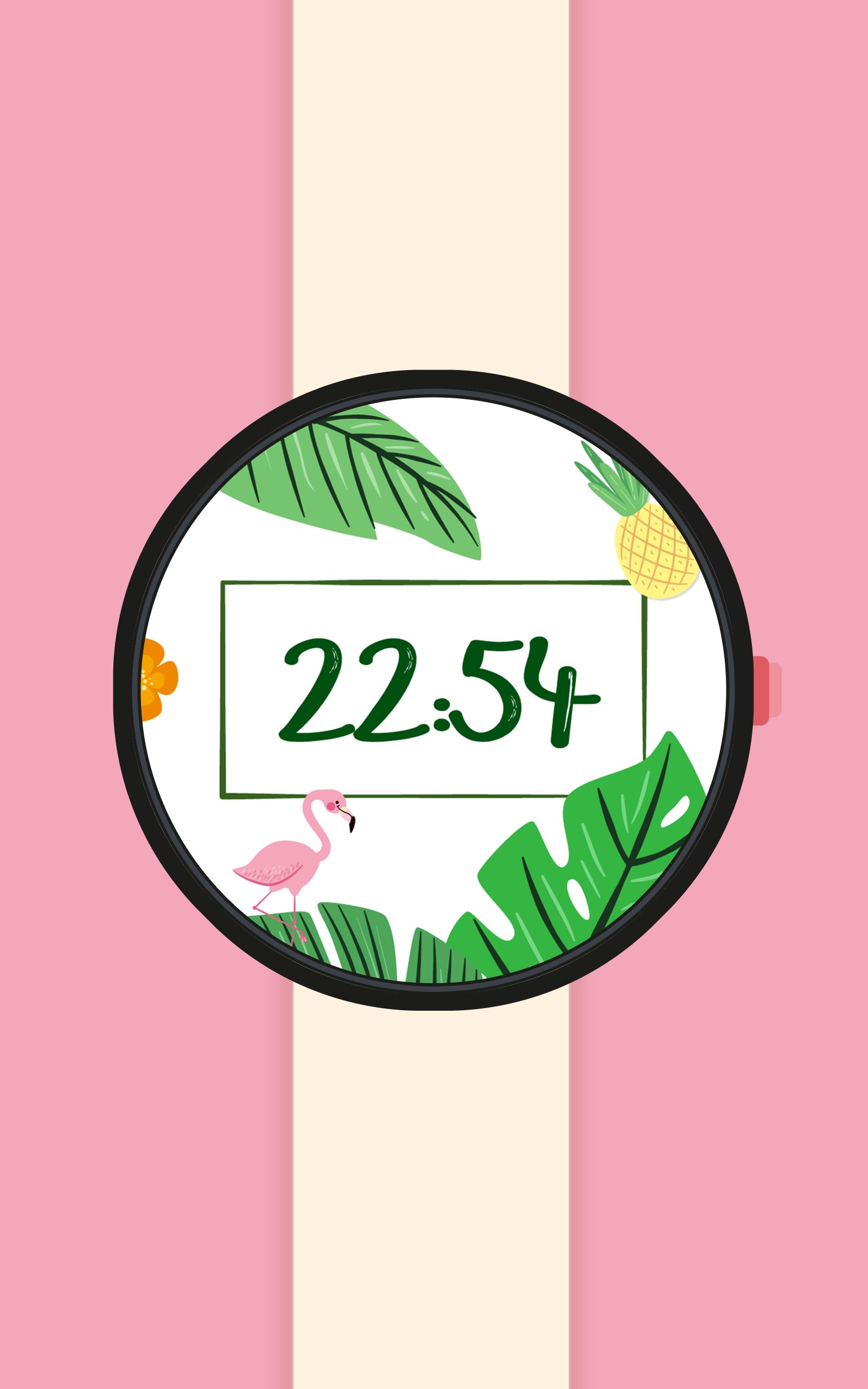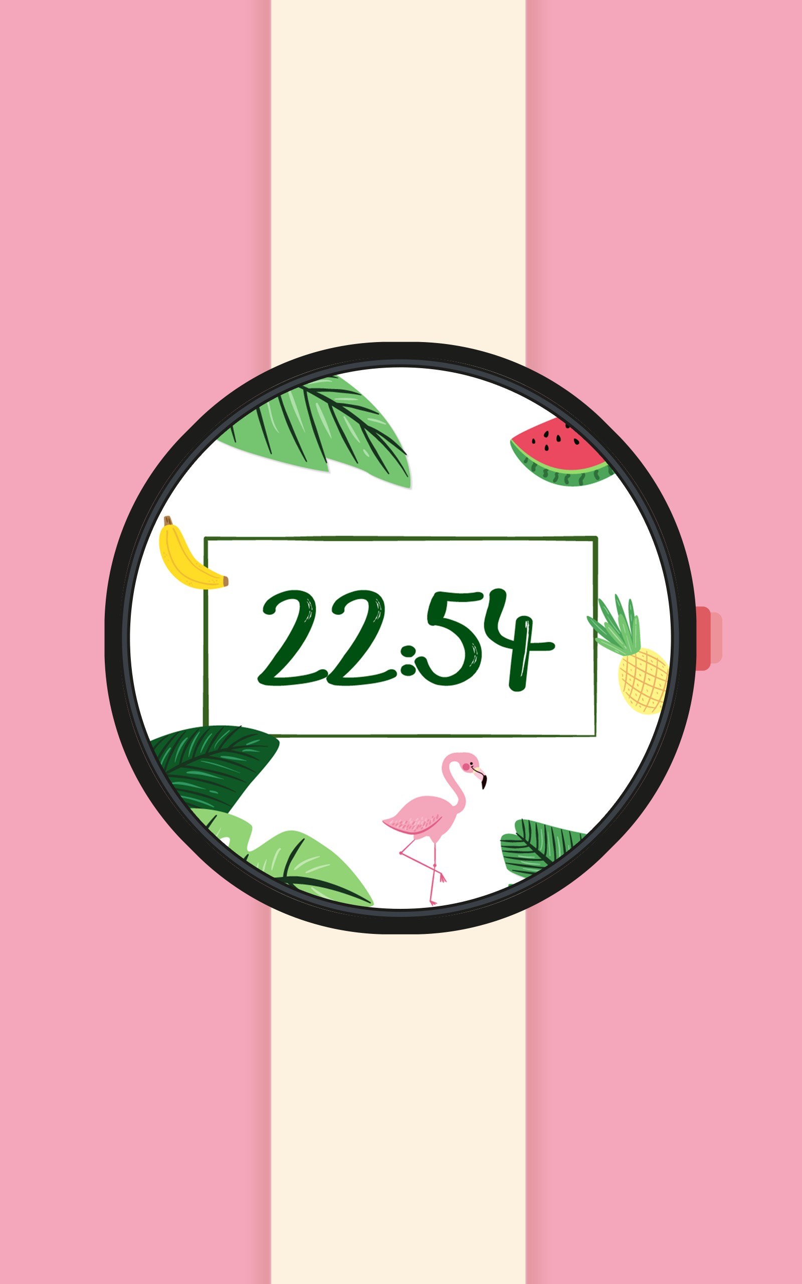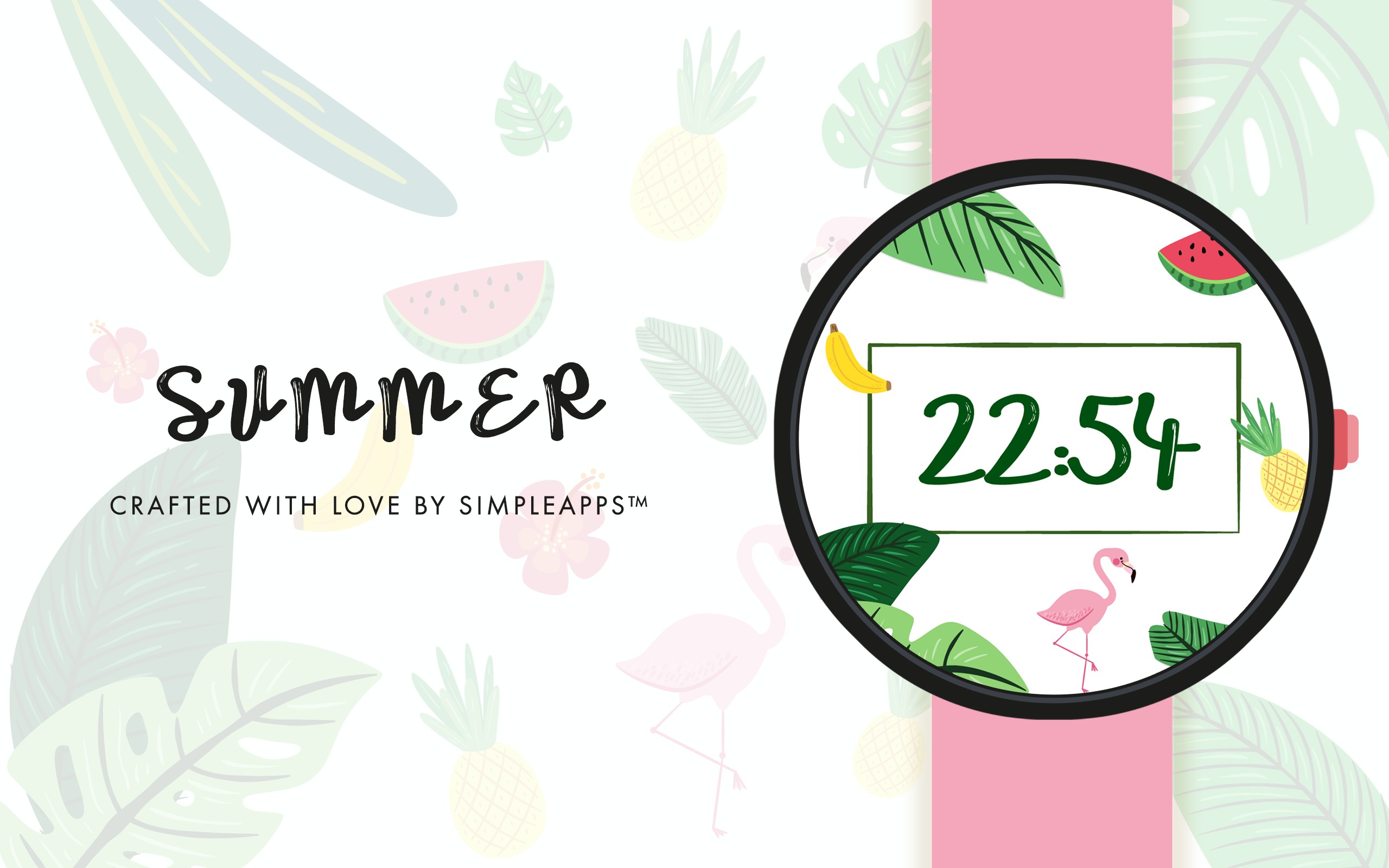 Enjoy the hottest summer themed collection for your smartwatch. Pink flamingos, watermelons, pineapples, bananas or tropical style? Or maybe all? Get inspiration for every day of the week with these 7 funky watch faces by SimpleApps™!