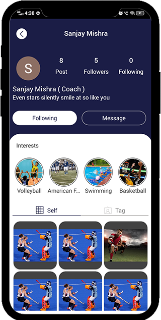 Create a Sponsor, coach, or player profile on the Super Sports Elite app.