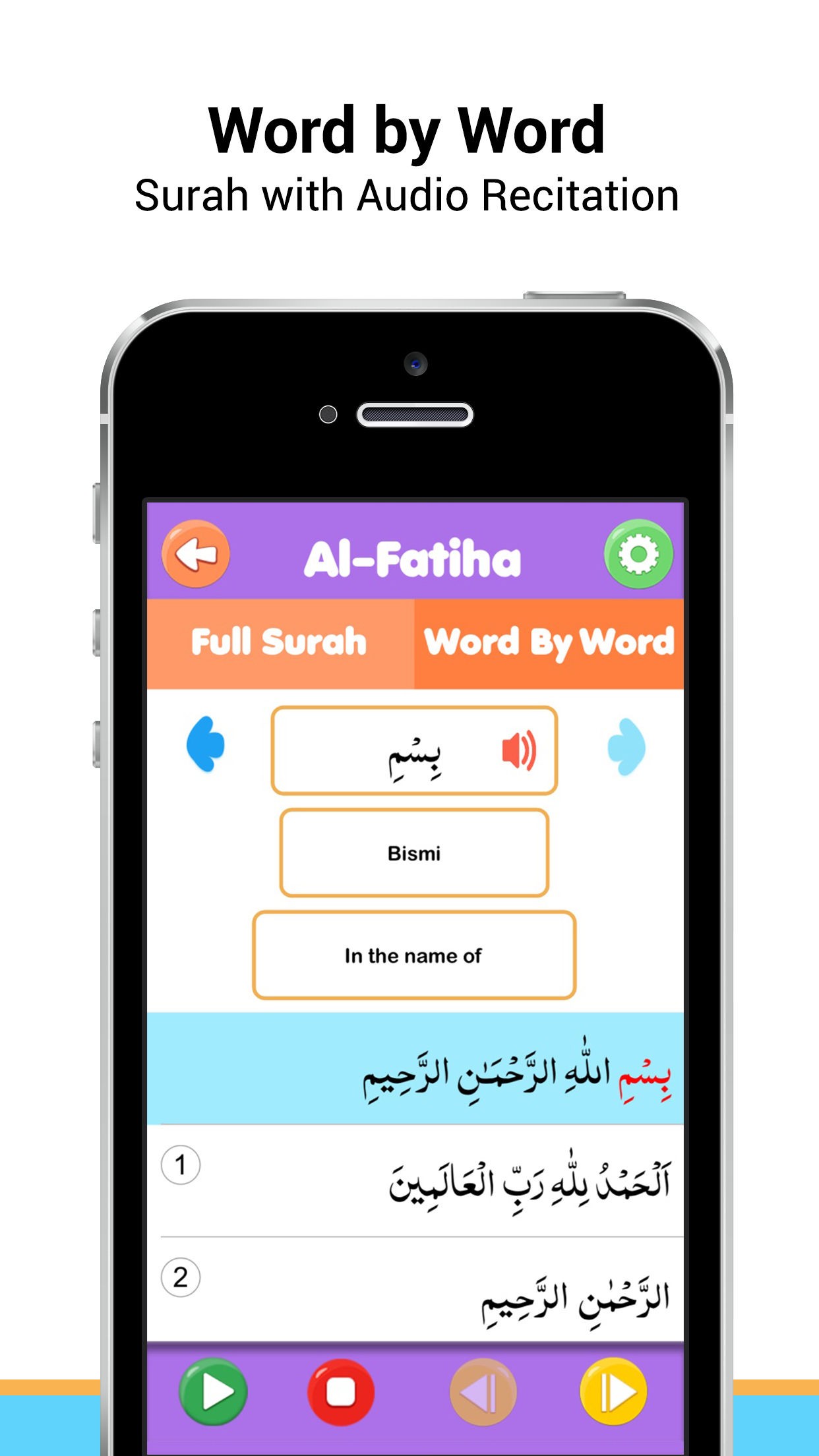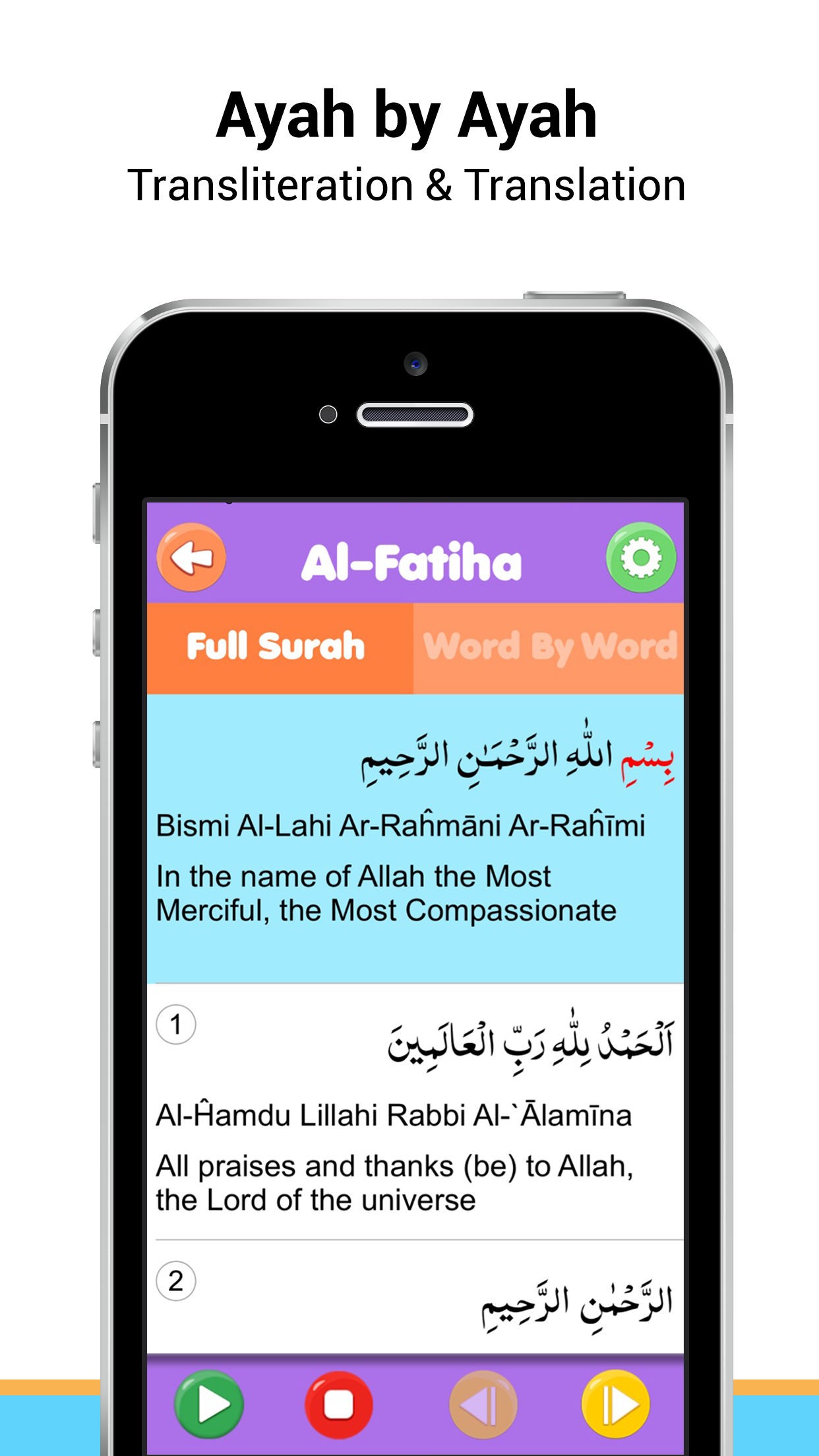 Download this free and easy to use application of Surah Fatiha and Other Surahs in order to better instruct and Learn Quran by memorizing short Chapters of the Quran Kareem.