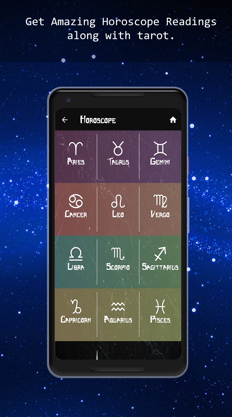 This app also provides a lot of tarot reading predictions like Finance Tarot Reading, Past Present Future tarot, most popular tarot spreads, Tarot Spinner game etc.