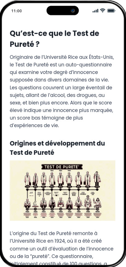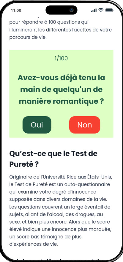 Welcome to our site dedicated to the Purity Test (https://xn--test-de-puret-nhb.fr/), a fun tool allowing you to evaluate and compare your life experiences. Originating from Rice University in the United States, the Purity Test has grown in popularity over the years, becoming an entertaining way to explore your level of innocence.