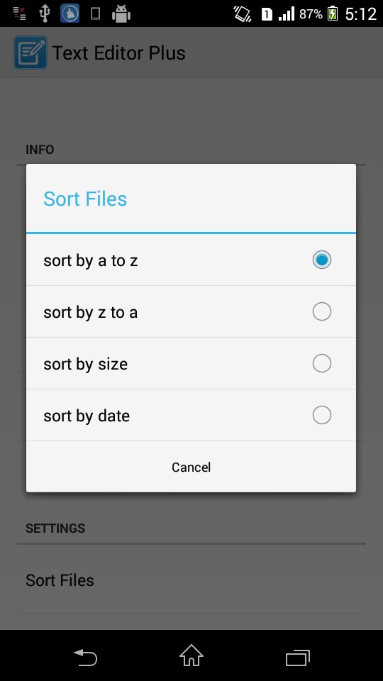 Simple Text Editor app to open, edit, delete, rename and save text files to and from the SD card.