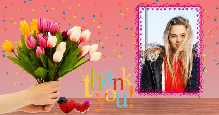Create amazing photographs via thank you photo frame app and share to your friends, family and others via social media such as Facebook, Twitter, WhatsApp, etc.