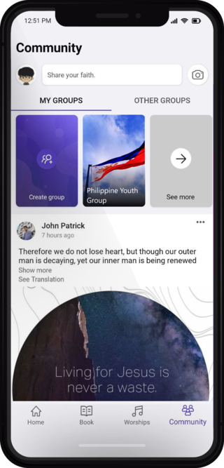 -Church Community: Connect with a supportive church community for scripture sharing and discussions.
