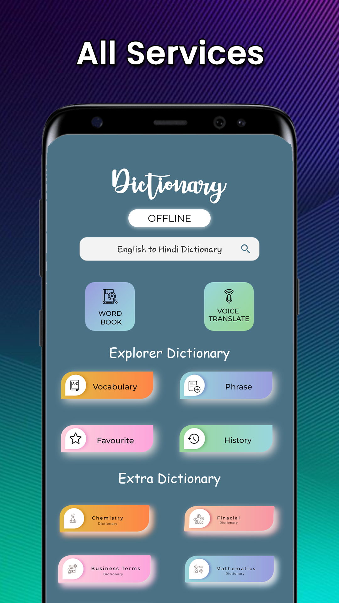 It's easy to use with a user-friendly interface and a sleek design. Search anything in English, Hindi or both languages. You can even type in a word or sentence and get instant translations. The content is also fully offline, so you don't need internet connection to access it!
