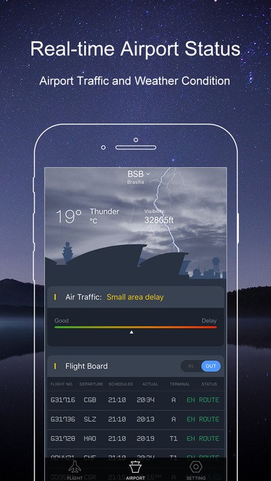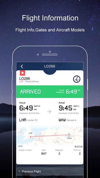 It provides users with real-time flight status info, incl. current location on the map, scheduled and actual time of departure and arrival.