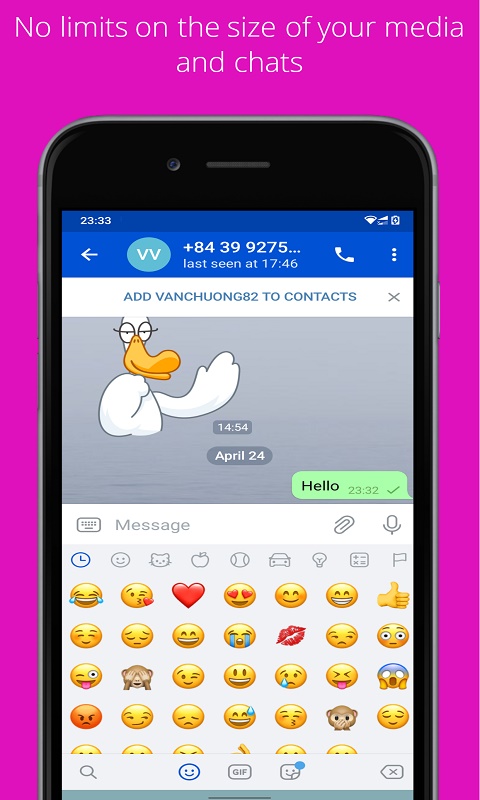 Express your feelings with cool stickers and emoji icons, and share your photos and videos, all in this messaging app.
