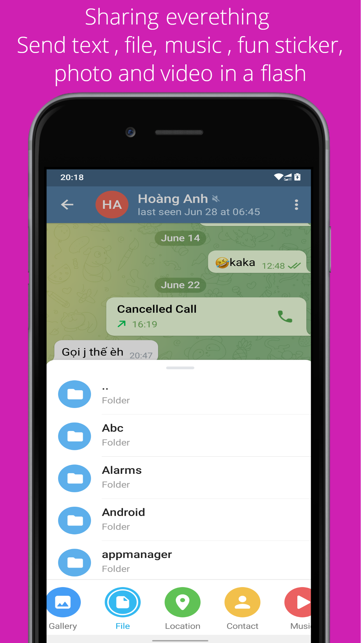 This is part of Telegram API and add some extra features a messaging and video calling that helps you connect with people around the world via the internet (using Wi-Fi or your data plan). Send text messages and video calls to friends and family.