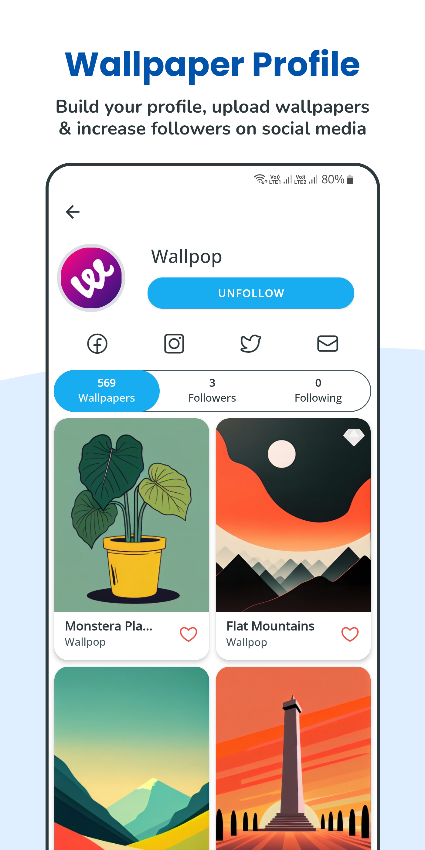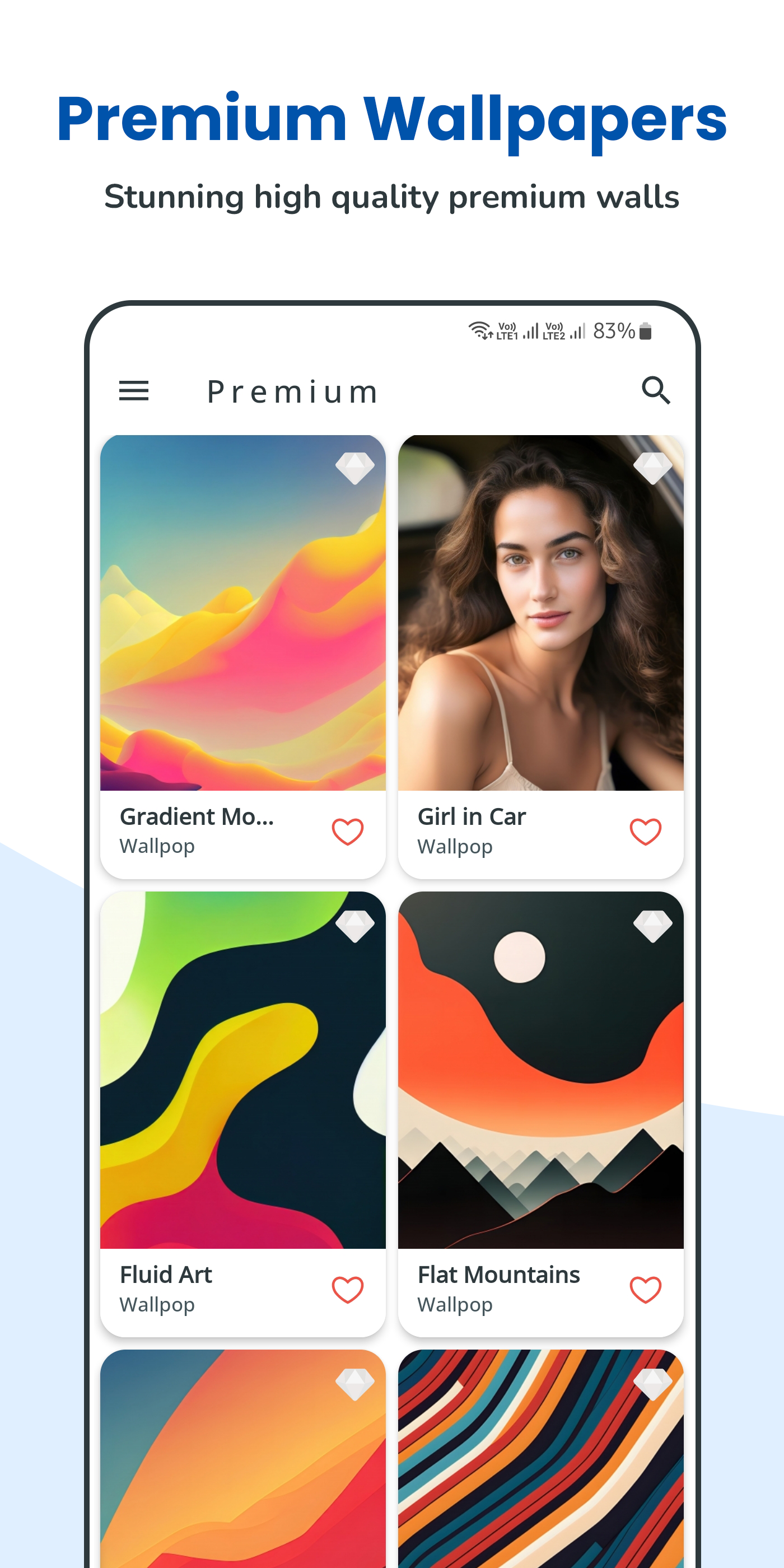 Wallpop is a premium wallpaper app with high-quality wallpapers updated daily. The wallpapers are of high resolution and the app has the following features: