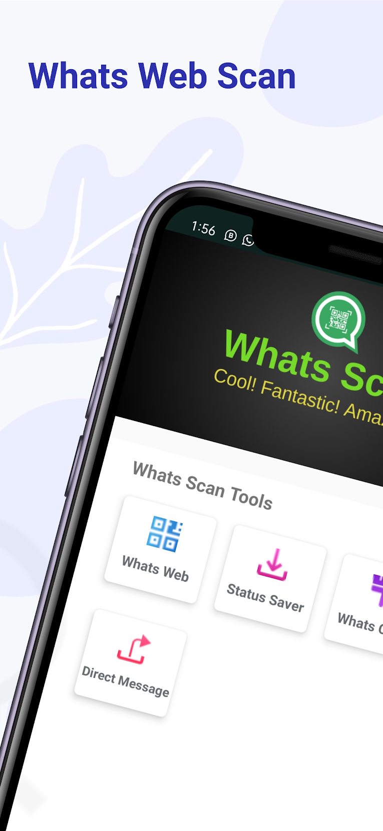 With the use of Whats Web Scan app, we can you use fetaures like Whatsapp Status Saver, Whatsapp Cleaner, send whatsapp without save number and Whats Web Scanner