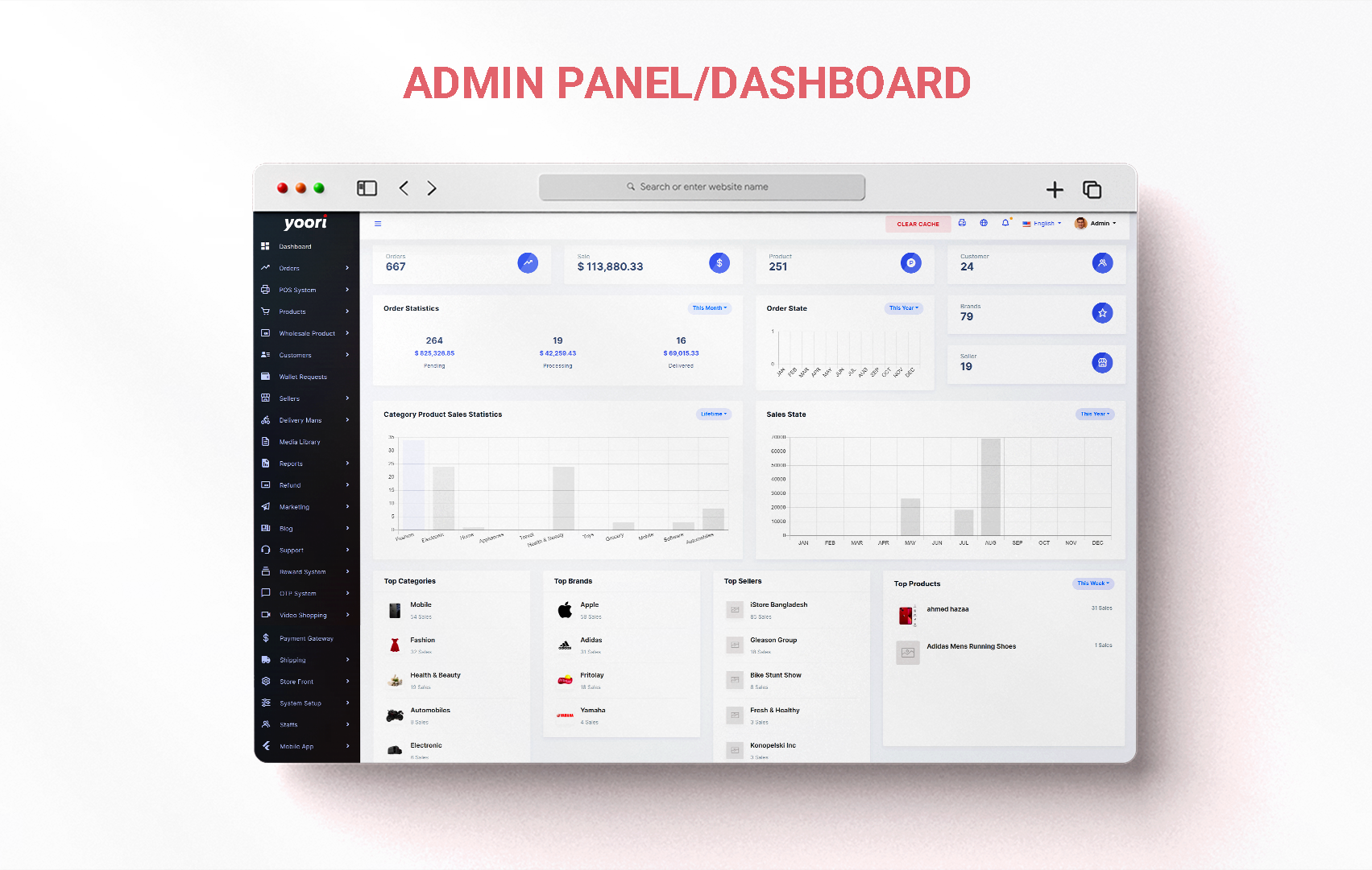 You will also have the opportunity to rearrange and redesign your Homepage with various content. Yoori gives you a detailed and easy-to-understand admin panel for maintaining your site and products. Other exclusive features include dynamic coupons, product stock, and invoice management, multiple admin and stuff, multiple currency support, multiple language support, actual customer rating, and so on.