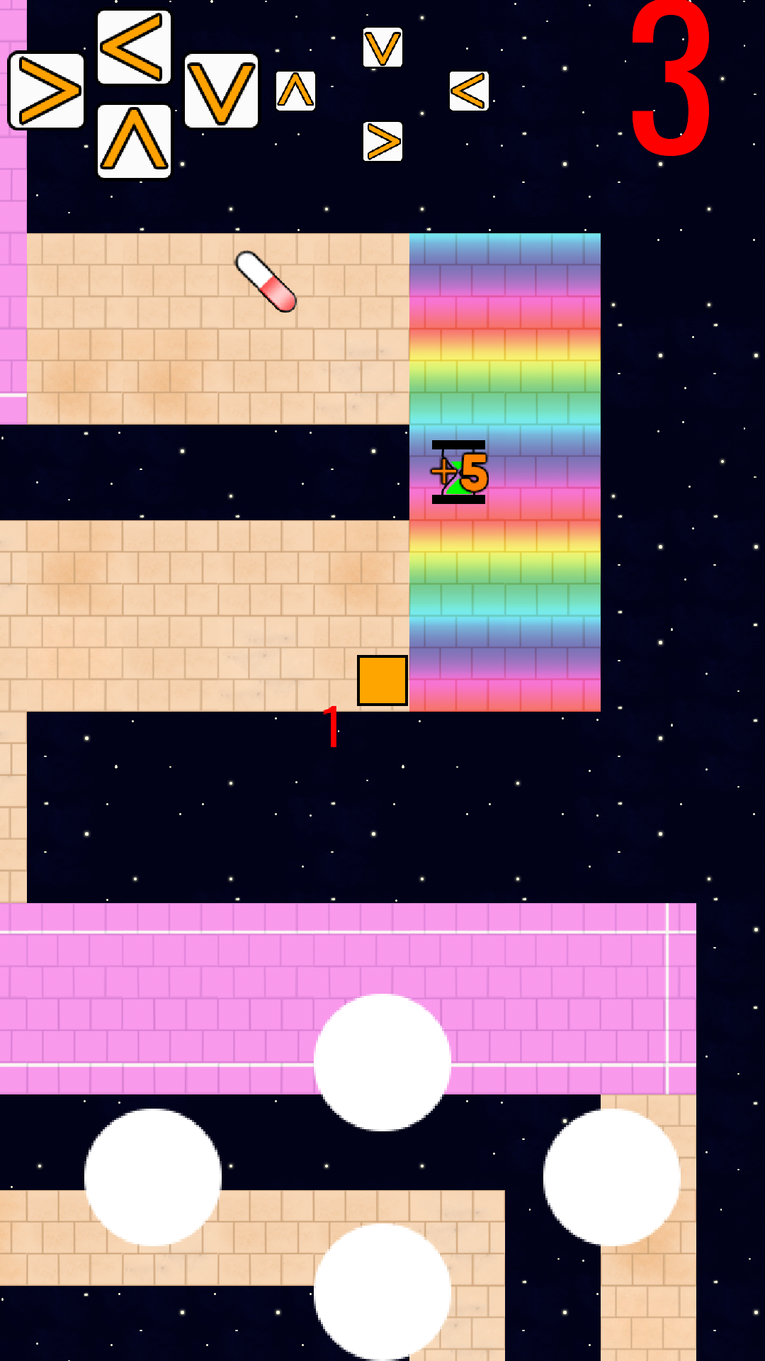 Guide the orange square through 20 creative levels in only little time. Watch out as the controls are changing every few seconds, sometimes entire levels are rotating and other obstacles are waiting for you. 10 Seconds is a game with unique game mechanics. For a beginner the random control changes (e.g. if you press up you now go right and if you press right you go left etc.) make it mind-boggling hard to accomplish even the easiest task as going straight. However, a dedicated player will adapt to the control changes very fast which is very rewarding. As the player proceeds further in the game more difficulties are added: Unwanted speed items (you now go fast, but can't stop), entire levels that rotate and similar.