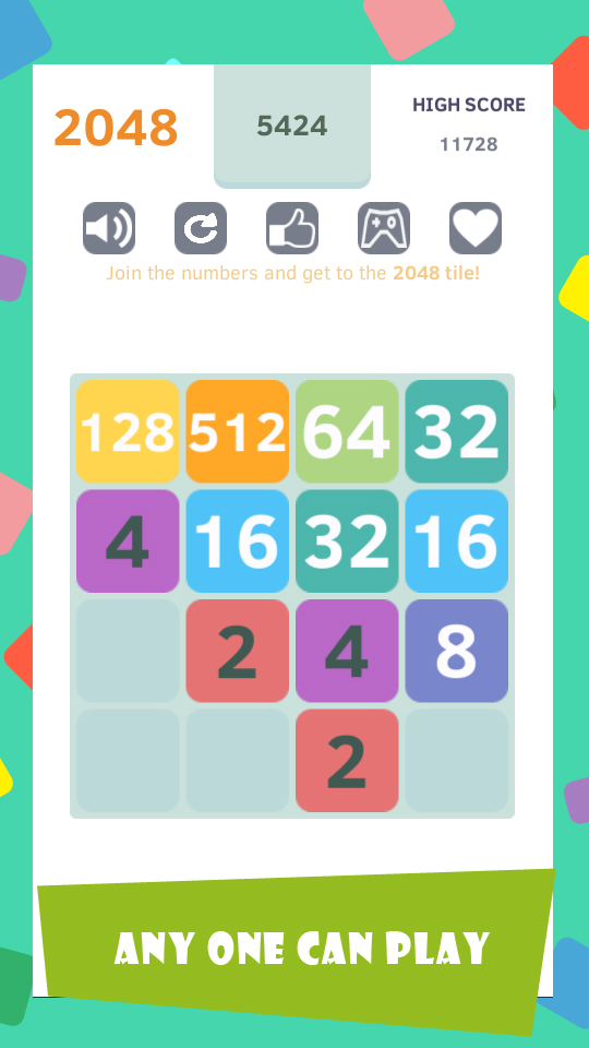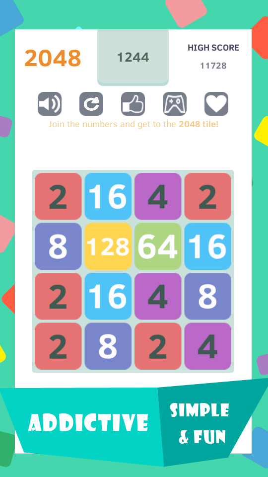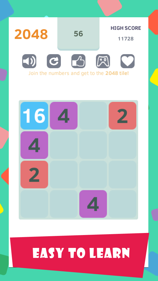 Swipe to move all tiles. When two tiles with the same number touch, they merge into one.