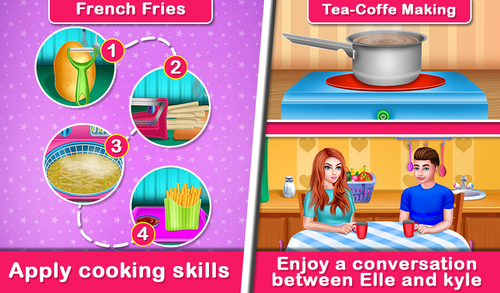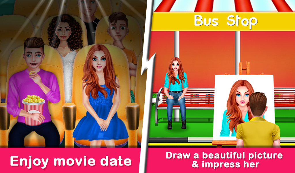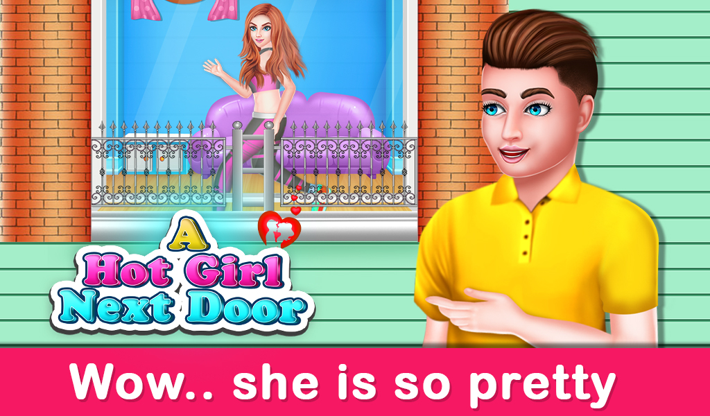 This fun game's concept is about a cute neighbour's love story. A Pretty girl next door neighbour romance that begins with the interesting and exciting story between a hot girl and charming boy. There are lots of views in this romantic game like the home arrangement, naughty camera, car chase, modelling, studio view, poolside photos, gyming view, computer repairing view and many more.