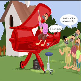 Help Abo, an emu bird, fulfill his dream of flying cross country in his homemade biplane. He must fly through the gaps of the obstacles to score points and reach the magical ticket that will propel from state to state. In addition, you must avoid the fleet of eagles that are sent by Eddie, a bitter old eagle that wants to stop Abo from reaching his goal.