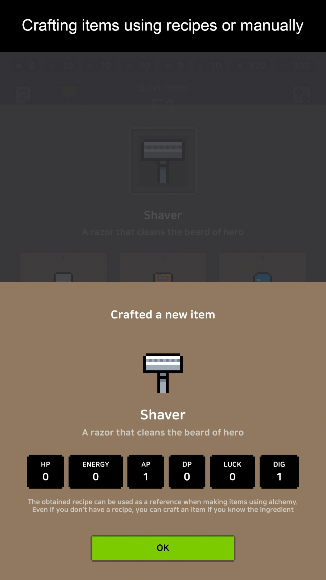 * Use the materials you collect to create various objects using alchemy and explore dungeons.