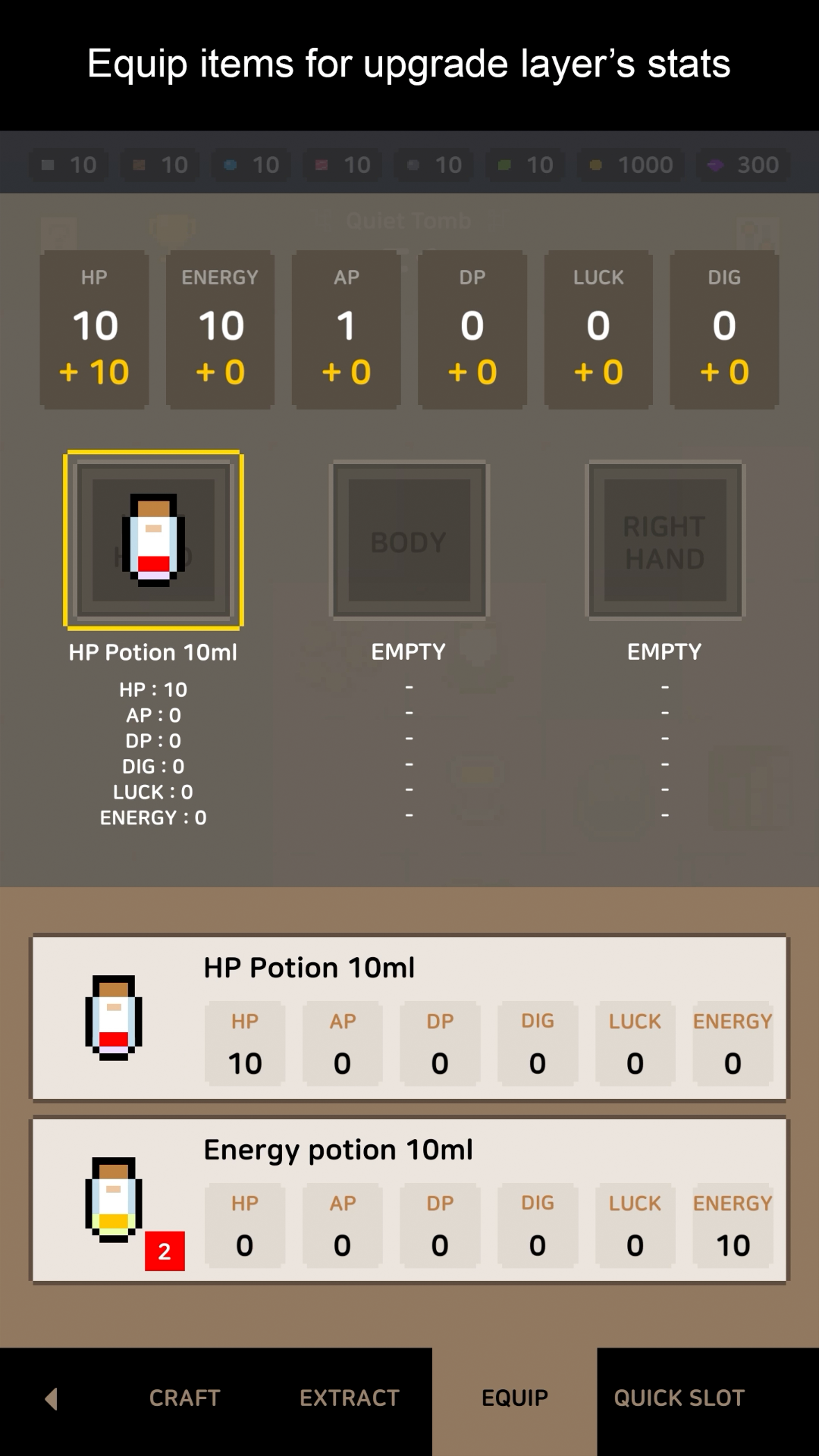 * All items, including alchemy-made food and potions, can be equipped to increase the player's stats.