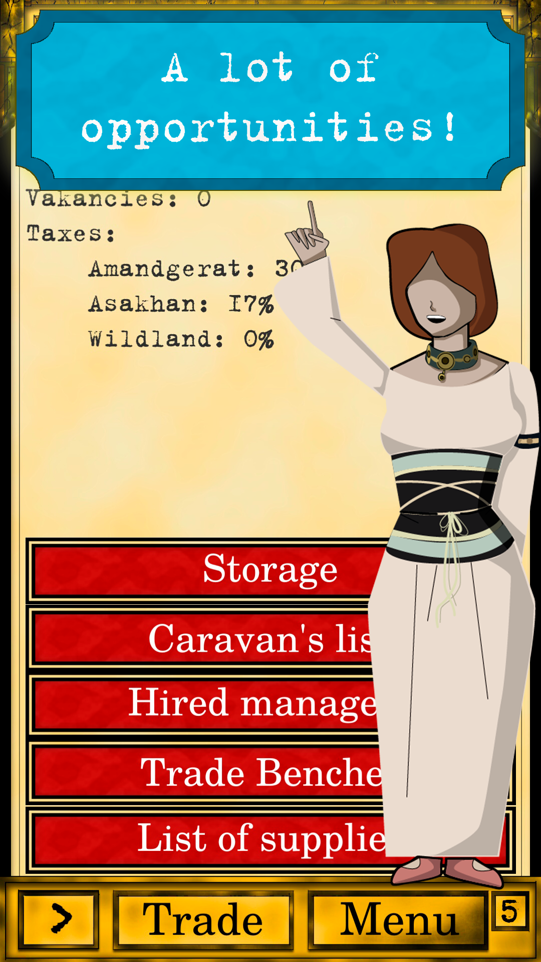 4. The total cost of goods on the market. Yes. The player’s warehouse is limited and its resources are spent as they are sold. For a successful game, you will have to enter into contracts of varying degrees of profitability, or even go to the black market and buy products “from the hands”.