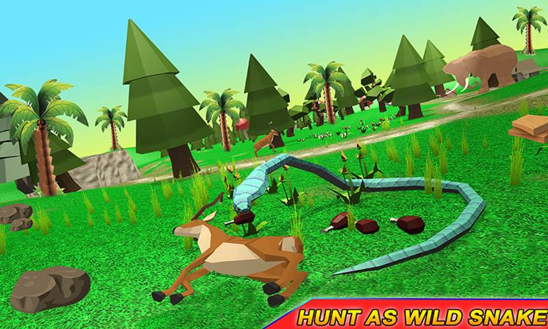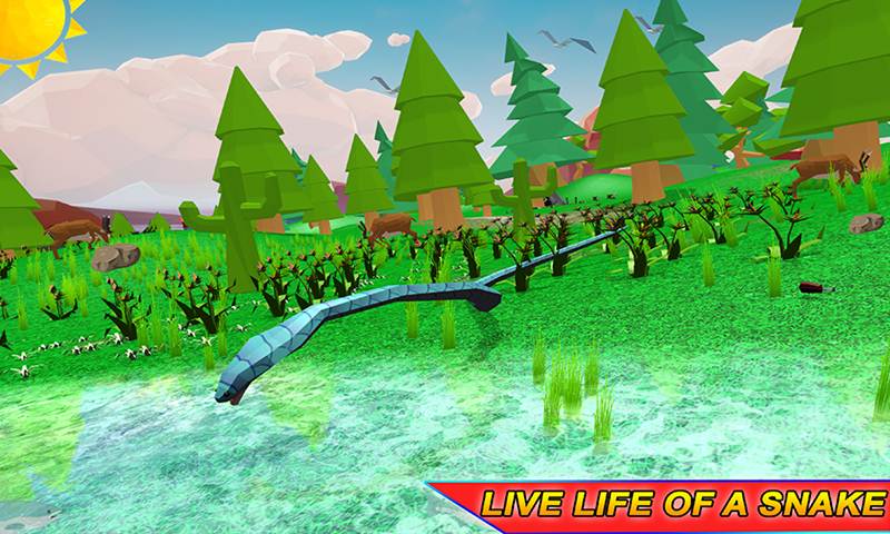 Anaconda Snake Family Simulator is interesting game with exciting gameplay where you Fantasy Anaconda and survive in jungle with your family. You will need to eat, drink and live your life as a Fantasy Cartoonic Anaconda Snake. You will be enjoying your life in the jungle alone. After some time you will feel the need of a Mate a female fantasy Anaconda Snake with whom you can start a family and can start your own Snake clan. You will need to find her, or maybe you also need to save her from the different wild animals like Blood