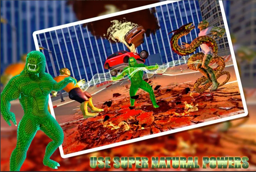 • Snake superhero city warrior introduced with supernatural attacking powers in multi hero games.