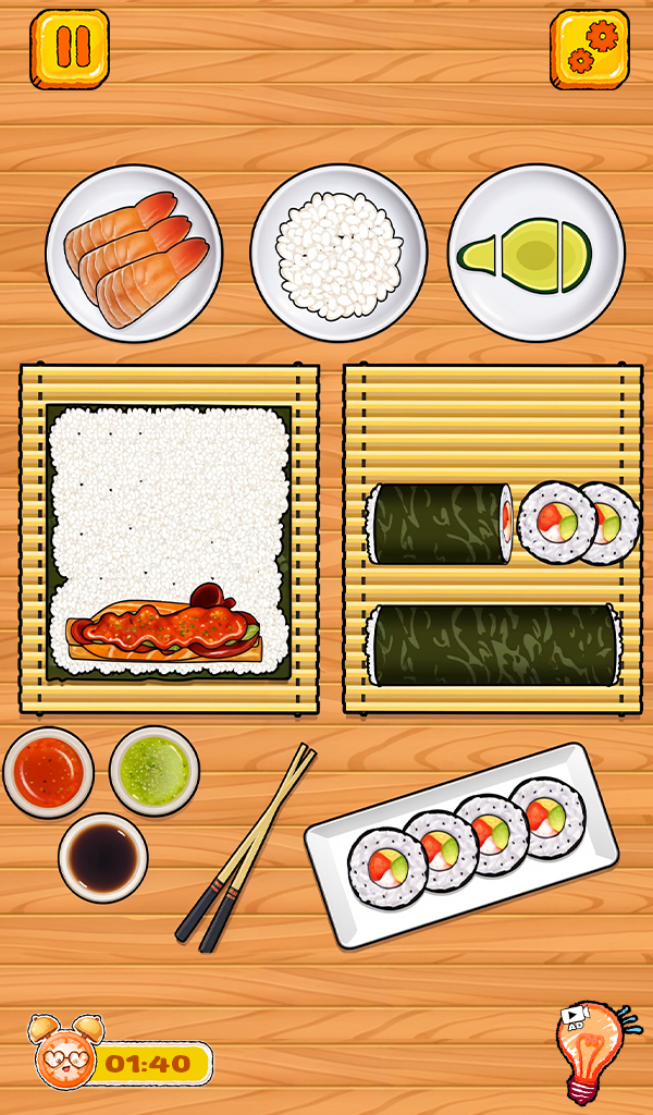 Arrange dishes by type, color, or order. Every level offers a fun sorting task before the next relaxing segment in mukbang games.