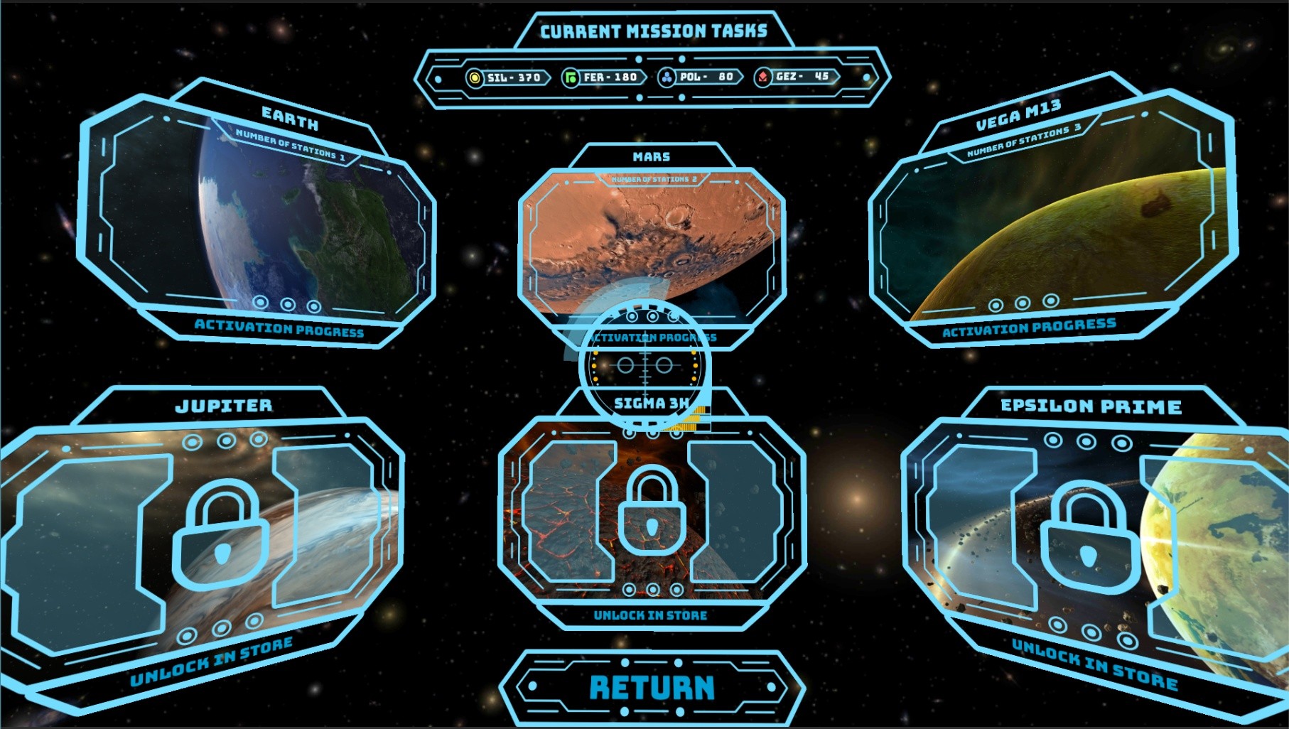 Use Google Cardboard or any other VR device for the game. During the game in VR mode you do not need to use the joystick or other buttons, the control is performed only by the rotation of the head and a delay of the sight on the button.