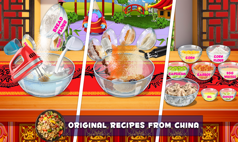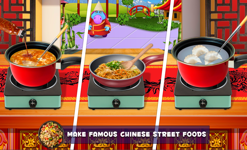 Enjoy cooking in the kitchen and street food stand wit the best Chinese food maker game with authentic recipes