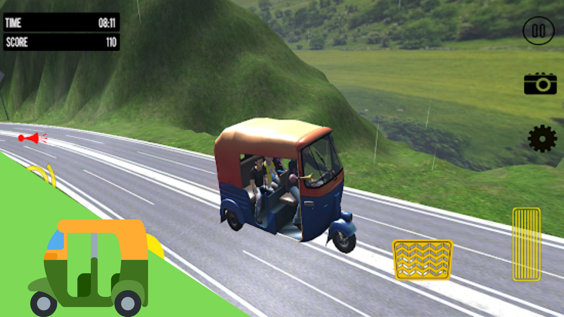 The most amazing Autorickshaw game. Drive with passengers through hills.