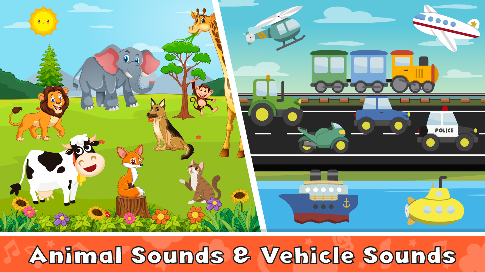 - Colorful musical game to learn animal sounds, vehicle sounds, and funny sounds to keep them interested