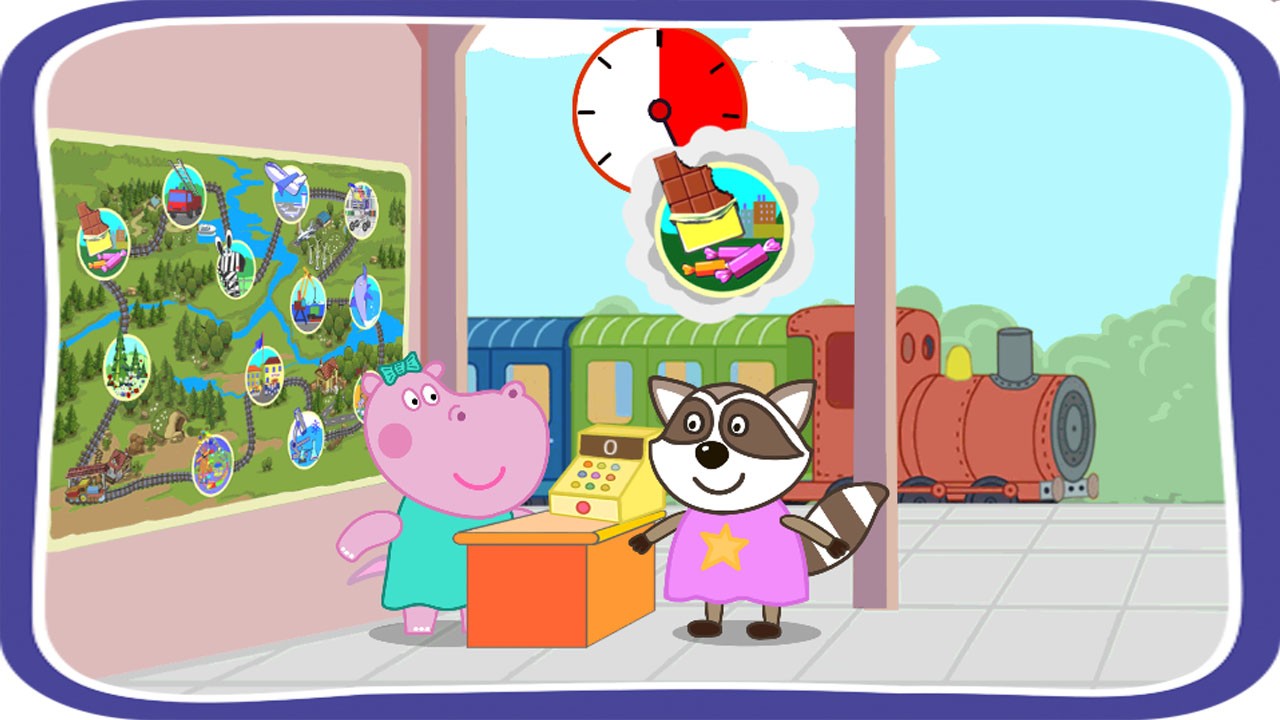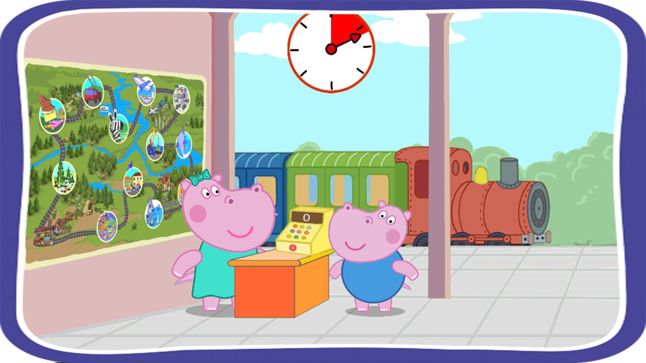 We are happy to present you a long-expected update of free educational games for boys and girls series. Baby Hippo have prepared a nice surprise for you. A big railway adventure is waiting forus! Kids’ games have never been so exciting. Today we get not only one train but the whole railway network and a great number of stations. So, the next train arrives at the central station, and baby Hippo takes place in the ticket counter. Passengers run to buy tickets, and Hippo should serve them all and make sure that they get on their train. And it is just the beginning of the adventures.