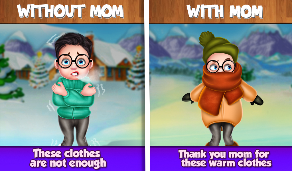 This mother game includes the signs of the best mom in the entire world. There are certain qualities of best mom like her kid's bag packing, warm clothes in the cold and lunchbox. Best mom never let their kids feel alone. Best mom gives her best to give the best to her kids. You will know that moms are the most lovable person in the world.