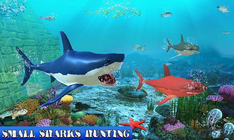 Welcome to the undersea world of white sharks and undiscovered creatures in Big Shark Vs Small Sharks game. Lot of adventures are waiting for you, hunting race, save shark mate, escape from hungry shark and much more fun in this shark adventure game. There are two modes in this deep shark’s ocean like, big shark hunting mode and small shark escape mode.