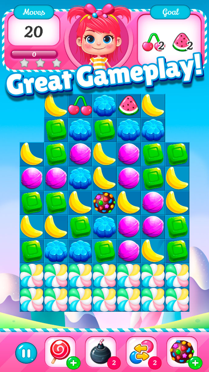 After hundreds of wonderful and amazing puzzle levels, jellies are then carefully well crafted. Enjoy these sweet treats with many enticing flavors of the classic candy you crave. Have Fun!