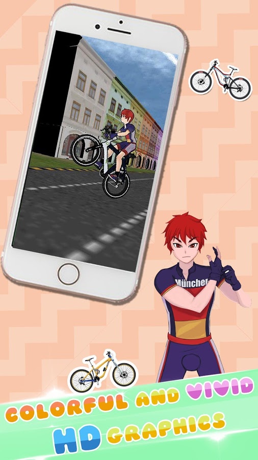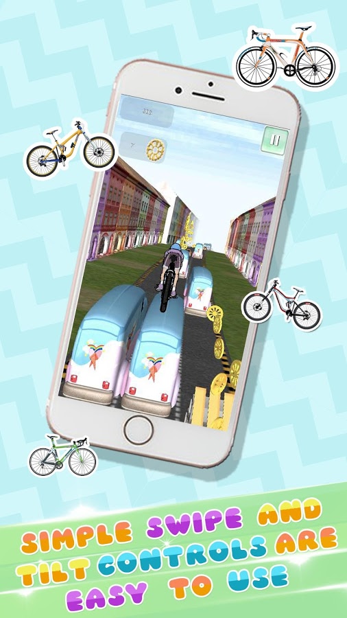 Feel the rush in the most exciting infinite play game yet! Choose from five stylish characters, jump on your bicycle and experience cutting edge 3D action as you ride through this adrenaline-fueled world. Enjoy the multiplayer feature and play with friends from all over the world! Execute tricks as you go to earn more points. The more you play the more you earn! Download now to start the adventure!